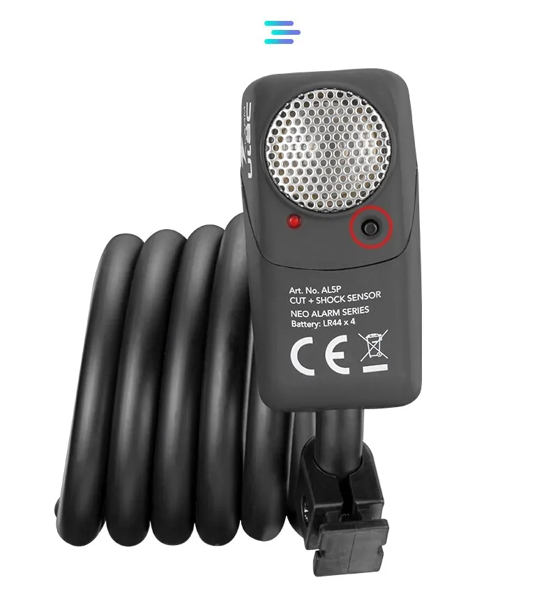 Alarm Knop1. druk de alarm knop en zal de LED licht. Na 5 seconden, de schok alarm zal beginnen.2. steek de lock pin in het slot, het slot zal een geluid, de kabel afgesneden alarm systeem is klaar3. het alarm piept 2 keer als een waarschuwing. Als het slot is hit weer, zal het alarm geluid 110 decibel voor 15 seconden.4. als de kabel is cut, het alarm zal een continue geluid van 110 decibel.