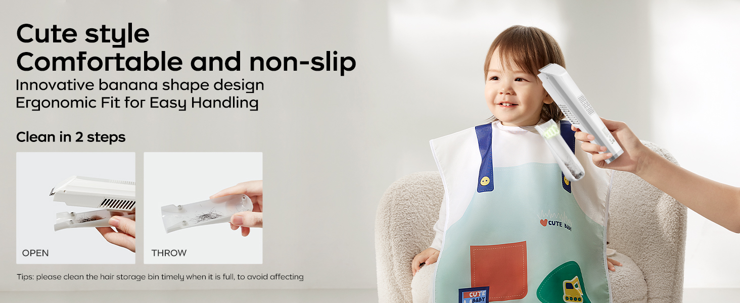 hair clipper provides a relaxed and peaceful hair-trimming session for the little one.