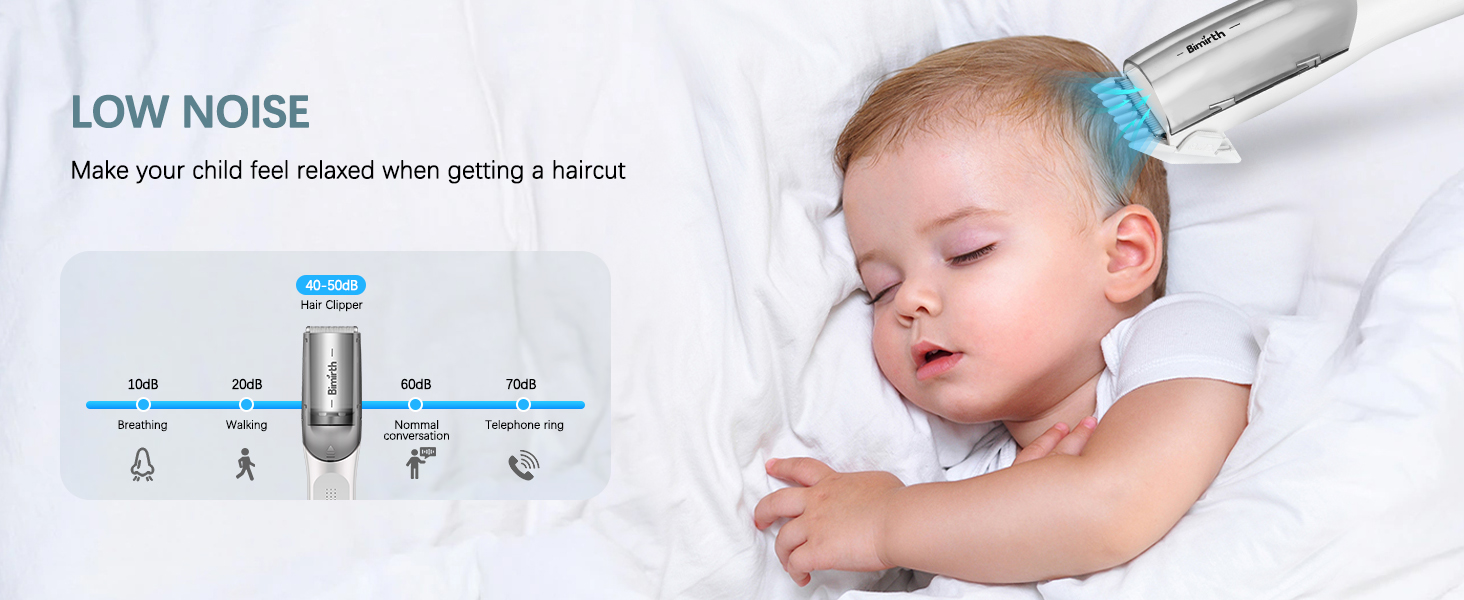 low vibration and with working noise less than 50dB. This feature can make your baby feel relaxed and not afraid of hair cutting anymore.