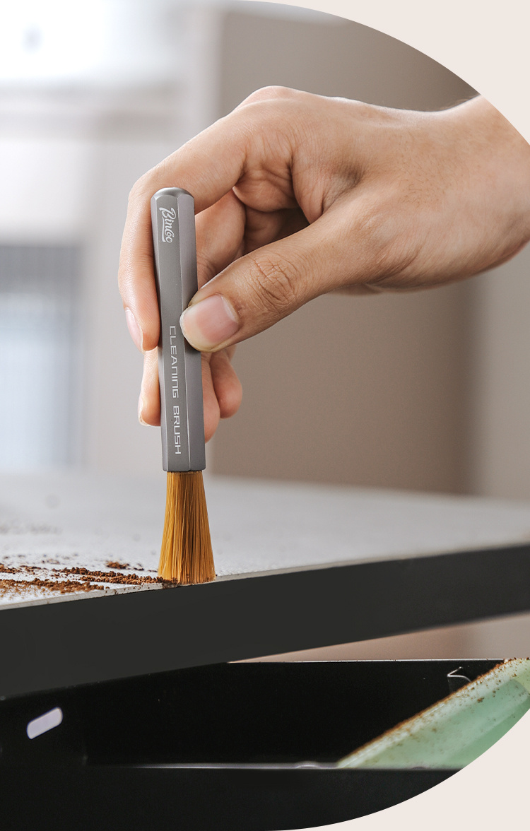The ergonomic handle provides a comfortable, controlled grip, making it easy to reach tight spaces around bean grinders, dosing chambers, scales, and brewing equipment. The brush bristles are firm enough to dislodge fine coffee particles yet gentle enough to avoid damaging metal or plastic surfaces.