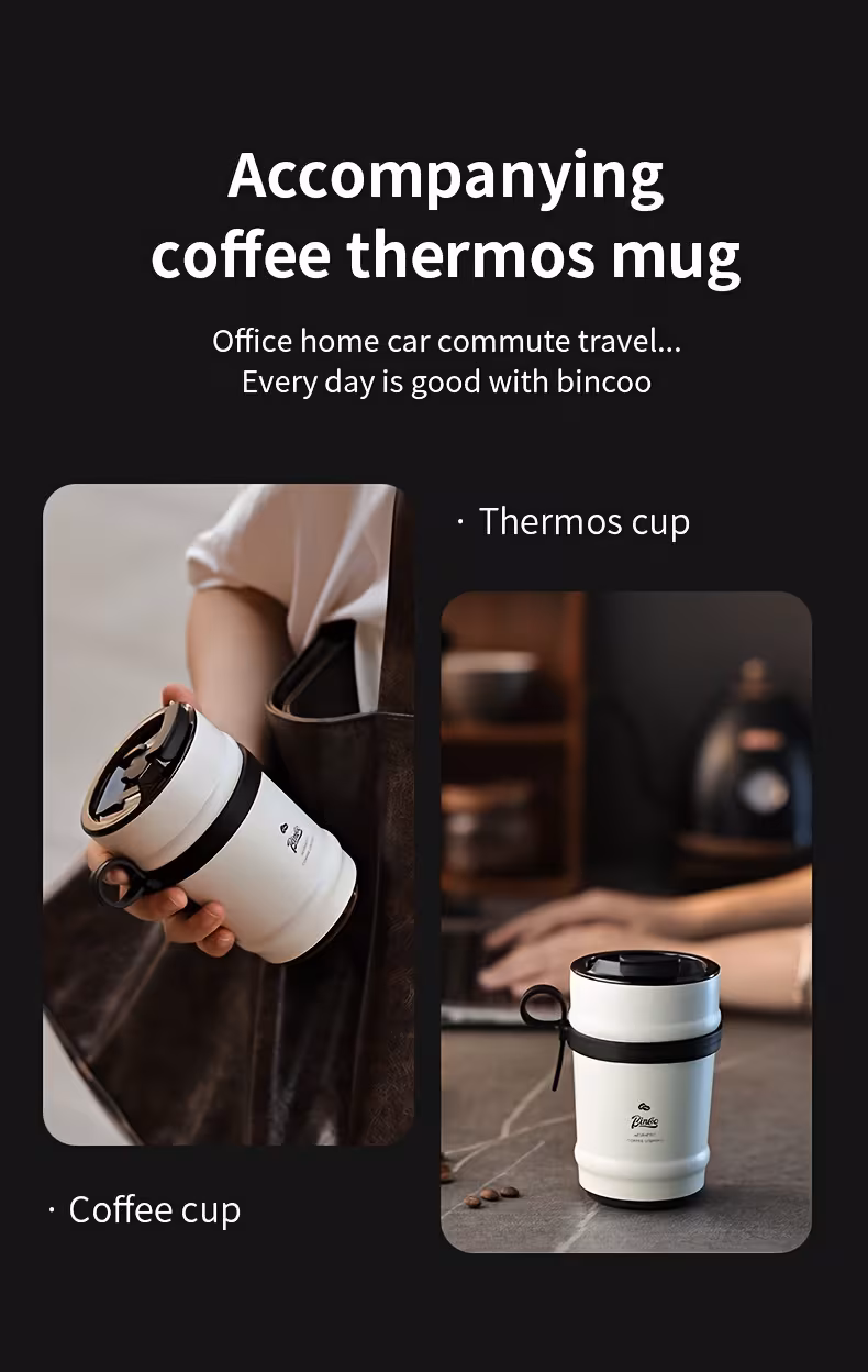 The Bincoo Ceramic Liner Coffee Cup with Lid offers premium taste clarity, durable stainless-steel construction, and elegant black-and-white styling. With spill-resistant portability and compatibility for hot and cold beverages, it is an excellent daily-use travel mug for NZ men and women seeking modern, reusable drinkware.