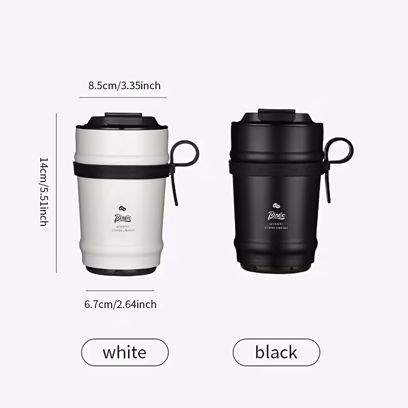The Bincoo Ceramic Liner Coffee Cup with Lid combines premium ceramic interior coating with 316 stainless steel, creating a portable travel mug designed for clean taste, superior durability, and all-day beverage temperature control. Featuring a sleek black and white modern design, this cup is ideal for hot and cold drinks, making it suitable for commuting, office use, outdoor activities, gym sessions, and daily NZ routines.