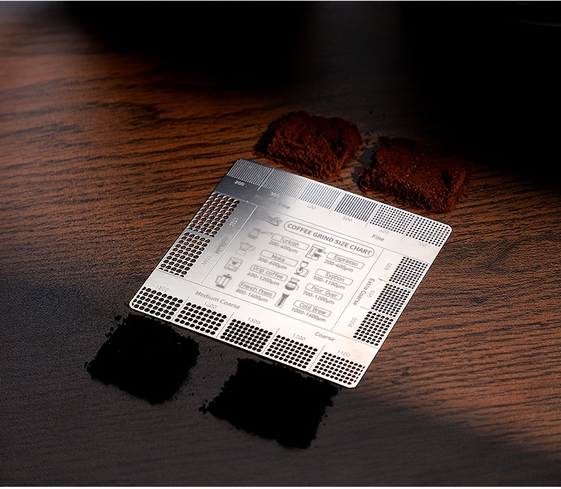 Each grind texture sample is carefully illustrated using high-definition printing technology, ensuring the textures appear visually close to real coffee grounds. The card includes detailed comparison levels such as: