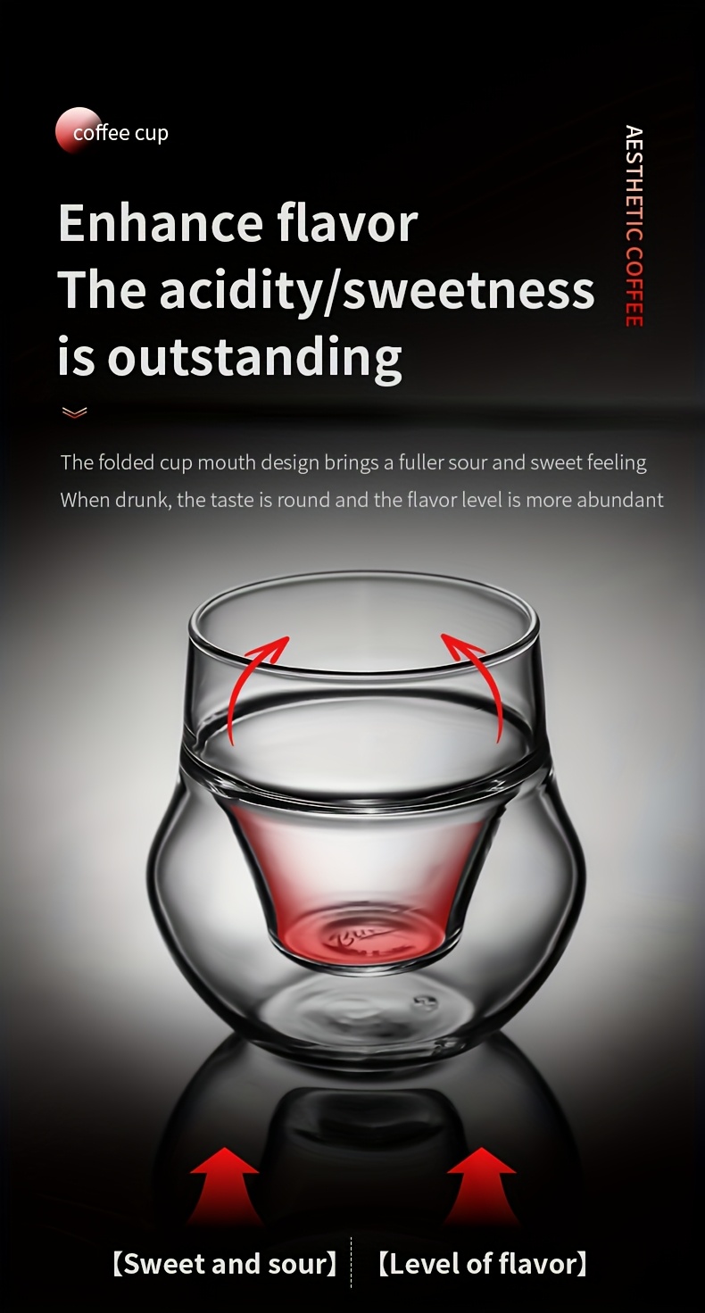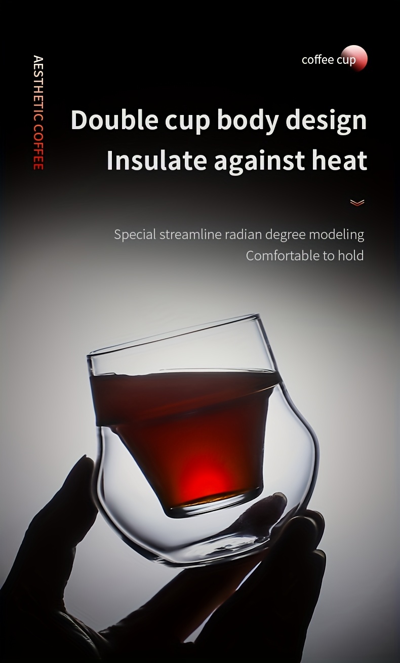 The double-wall design reduces heat transfer, allowing espresso to stay warmer for longer without overheating the hand. This makes it ideal for strong shots, specialty brews, and aesthetic coffee presentations. Its sleek and modern curved shape fits comfortably in the hand while maintaining stability on kitchen and café surfaces.