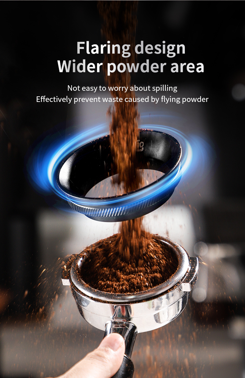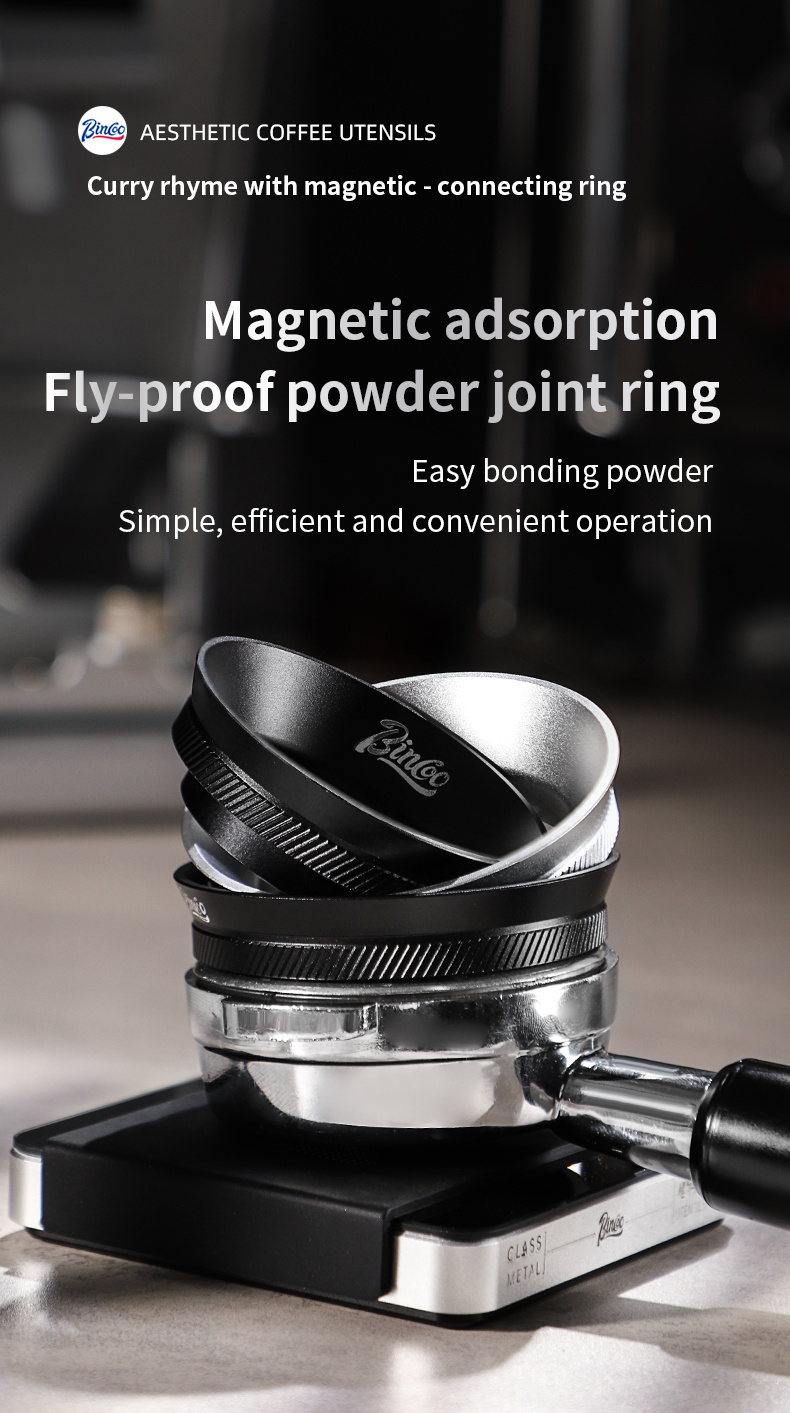 The Bincoo Magnetic Coffee Dosing Ring is a wide-mouth espresso funnel designed to eliminate mess, reduce static, and ensure precise dosing during grinding. Built from durable metal with a sleek finish, this funnel magnetically attaches to 51mm and 58mm portafilters, providing a secure and stable fit while keeping every gram of coffee powder inside the basket.