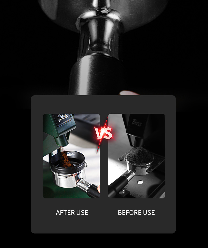The Bincoo 51mm magnetic dosing funnel streamlines the dosing process by securing firmly to the portafilter and preventing coffee grounds from spilling. The anti-static interior ensures cleaner, smoother transfer of fine espresso grounds, greatly improving workflow and dosing accuracy.