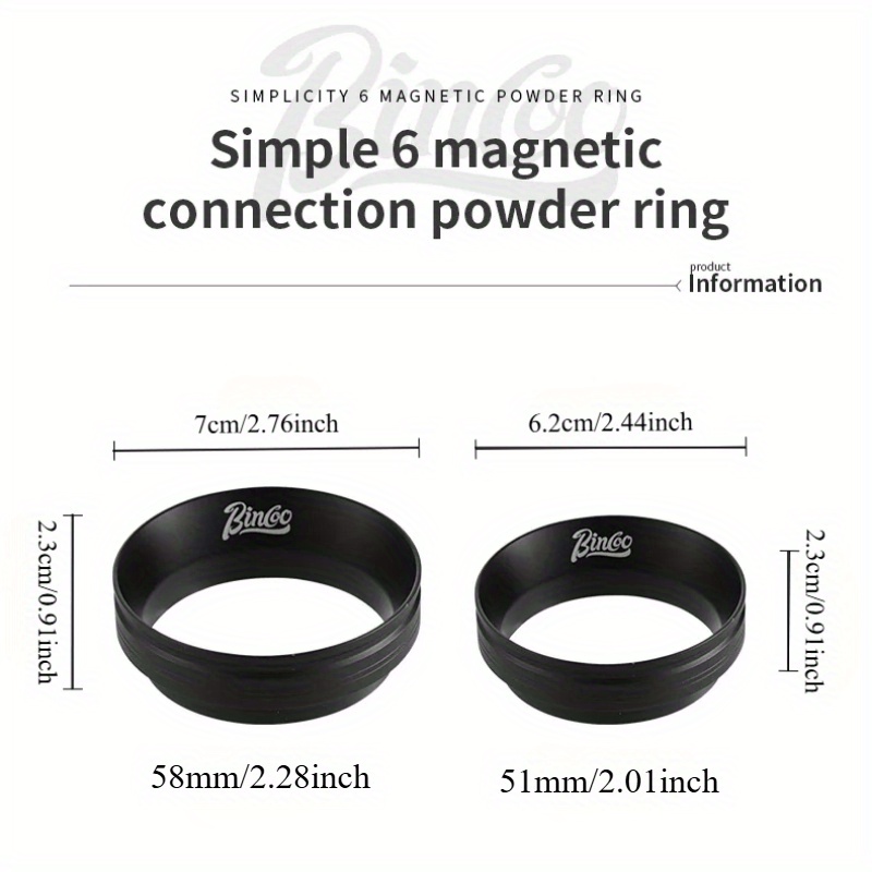 The Bincoo Magnetic Espresso Portafilter Dosing Ring & Funnel is a professional metal coffee accessory designed to prevent spillage, reduce static, and improve dosing accuracy for 51mm espresso baskets. Built for home baristas and café users, this funnel magnetically attaches to compatible 51mm portafilters, offering a secure and stable connection during grinding and distribution.