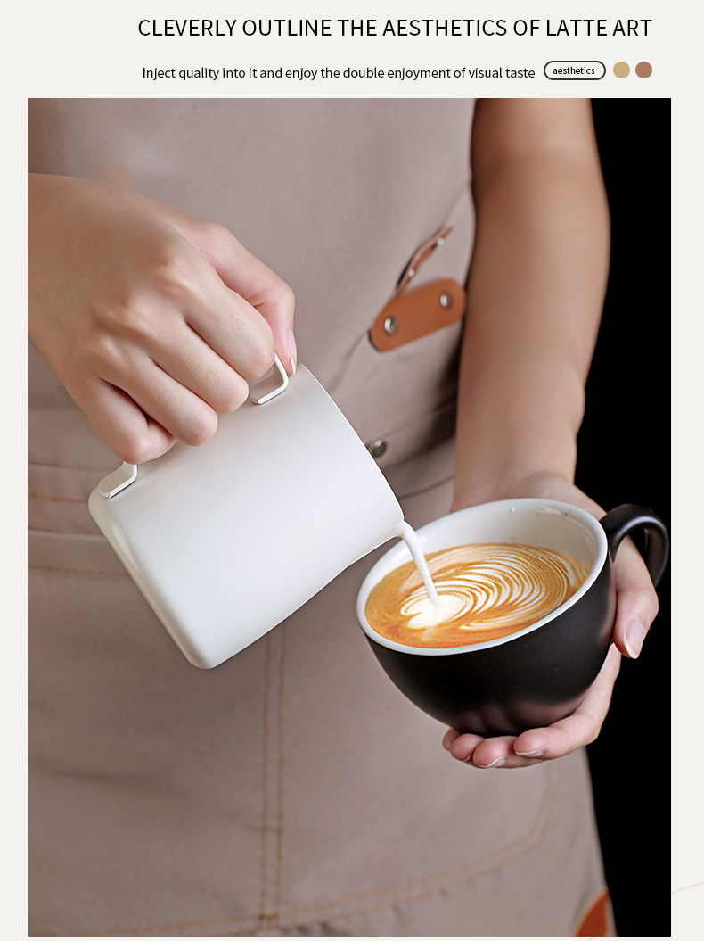 The pointed mouth spout supports precision pouring, making it ideal for latte art, micro-foam control, and accurate beverage composition. Its 600ml capacity is perfect for single or double drinks, allowing enough room for milk expansion during steaming. The sturdy handle offers secure grip and balanced weight distribution during pours.