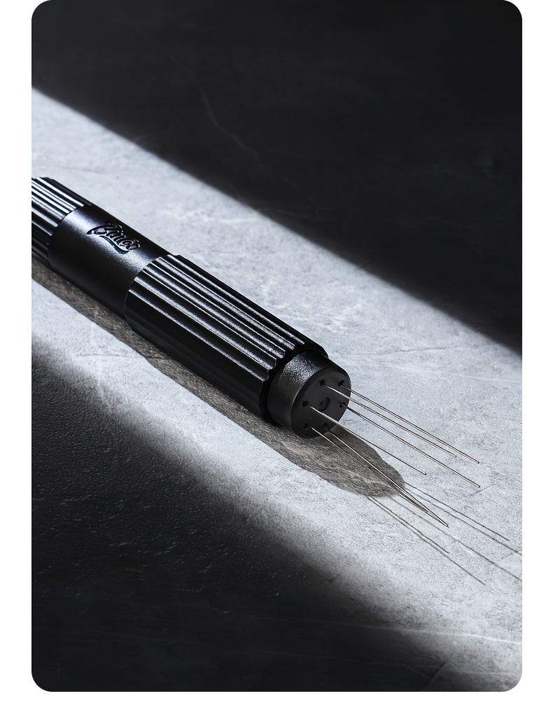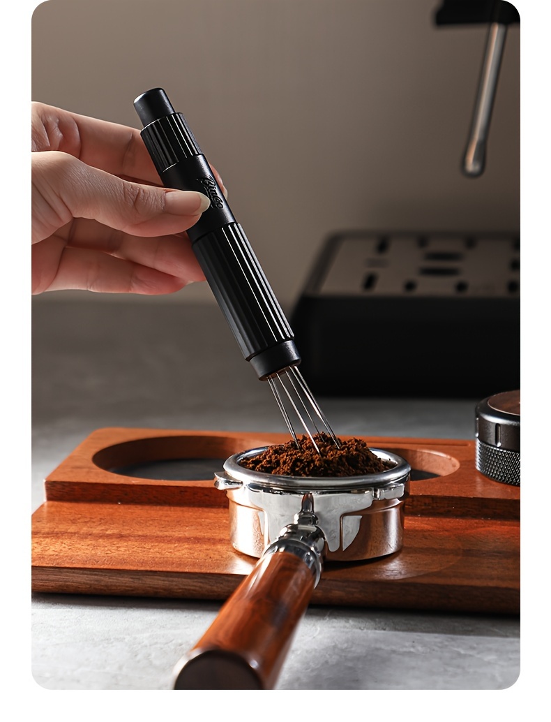 Whether used with a manual, semi-automatic, or professional espresso machine, this needle distributor improves puck preparation and supports consistent, high-quality espresso extraction.