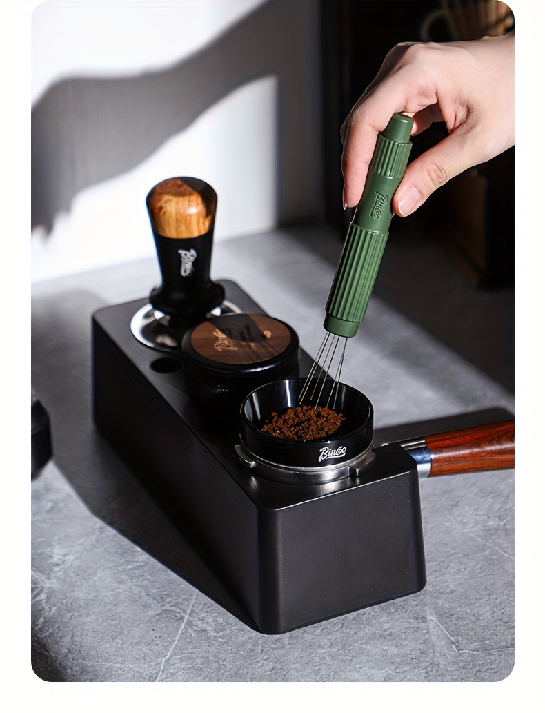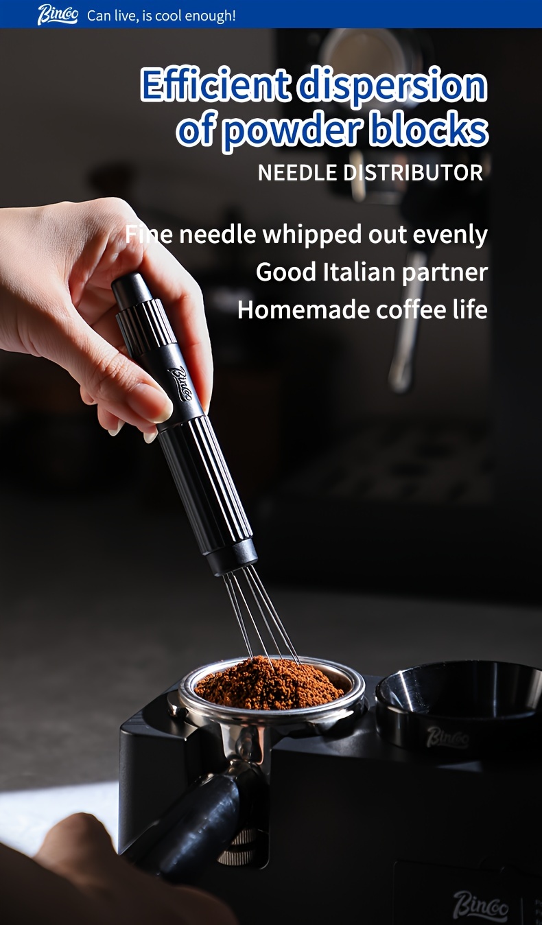 This tool enhances coffee extraction by eliminating micro-clumps and creating uniform density across the portafilter basket—an essential step for consistent water flow and preventing channeling. Ideal for home baristas and café professionals, the Bincoo needle dispenser supports cleaner, more even espresso shots.