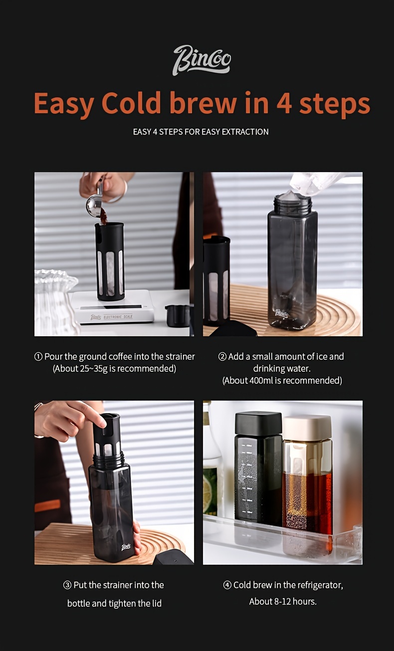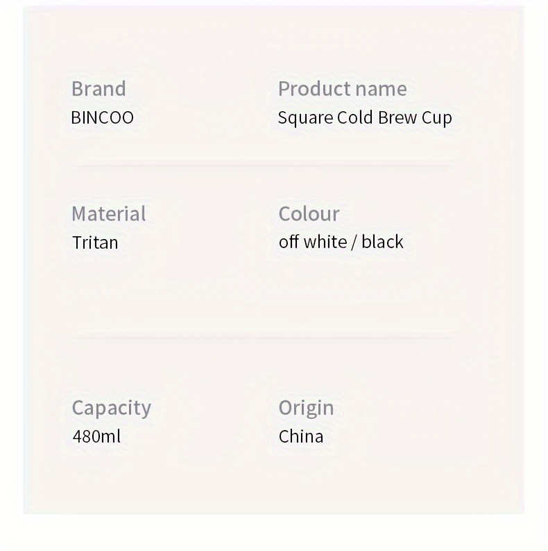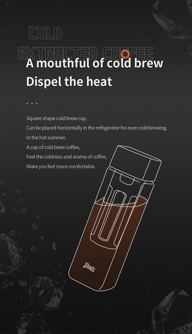 The Bincoo Modern Square Tritan Coffee & Cold Brew Cup is a durable, multi-purpose beverage container designed for manual brewing, daily hydration, and hot/cold drink preparation. Constructed from premium Tritan plastic, it offers exceptional clarity, heat resistance, and long-term strength without cracking or retaining odours.