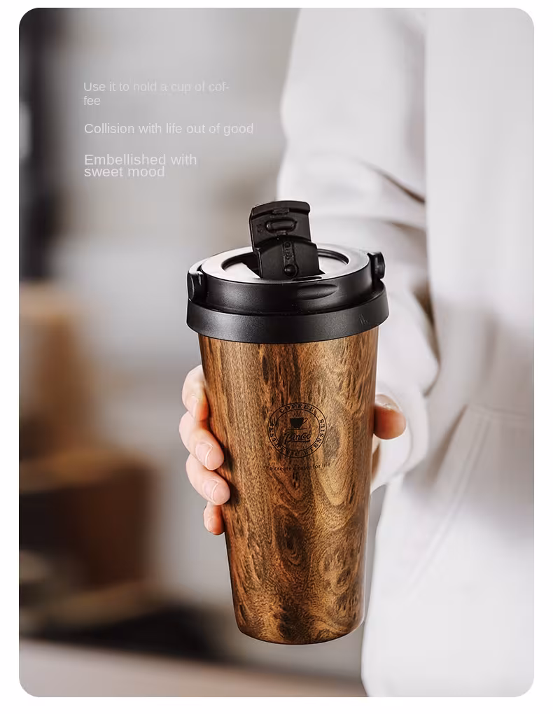 The leakproof lid seals securely, preventing spills during commuting, work, gym sessions, travel, or daily NZ routines. Its smooth, ergonomic design fits most car cup holders, backpacks, and office setups. The wood grain finish provides a modern, natural aesthetic, while the stainless-steel inner layer ensures long-lasting durability and resistance to rust, odours, and staining.