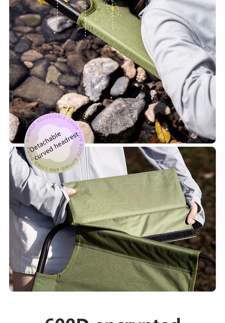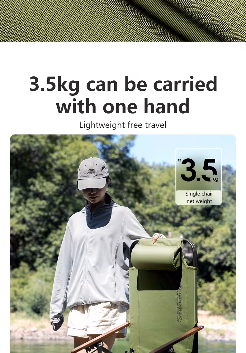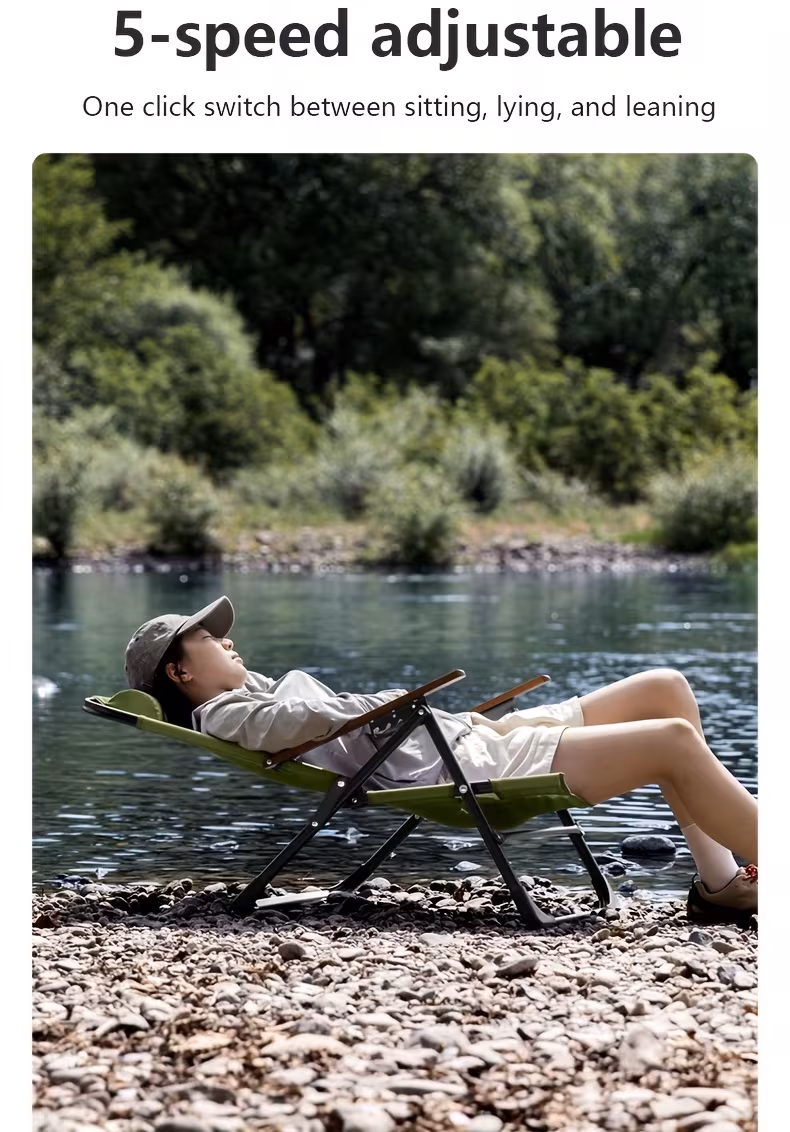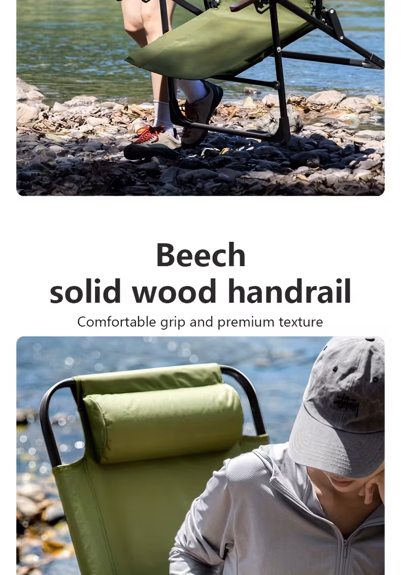 The BISINNA Reclining Lounge Chair combines durability, ergonomic comfort, and portability into a single outdoor seat. Its high backrest and cushioned headrest provide support unmatched by basic camping chairs, while the adjustable recline makes it versatile for multiple relaxation styles.