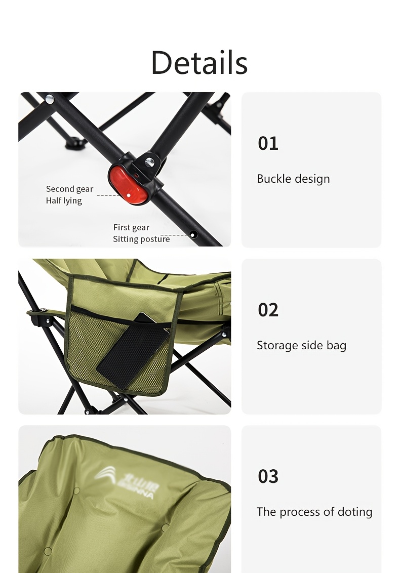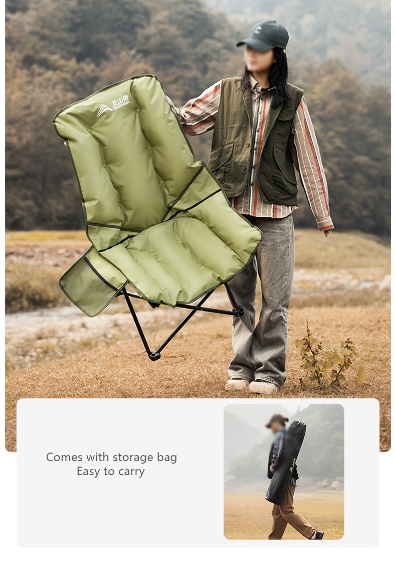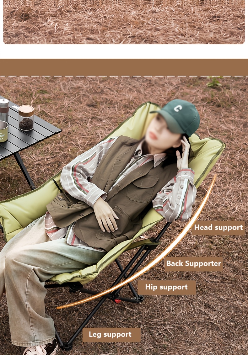 The BISINNA Foldable Recliner Chair is a sturdy, cushioned outdoor seating solution built with a high backrest, iron alloy frame, and durable Oxford cloth fabric. Designed for camping, picnics, patios, backyards, balconies, and general outdoor activities, this chair provides excellent support and comfort during long periods of sitting.