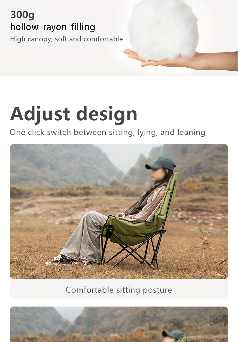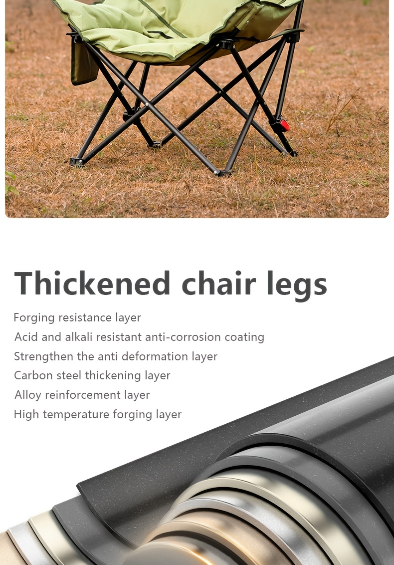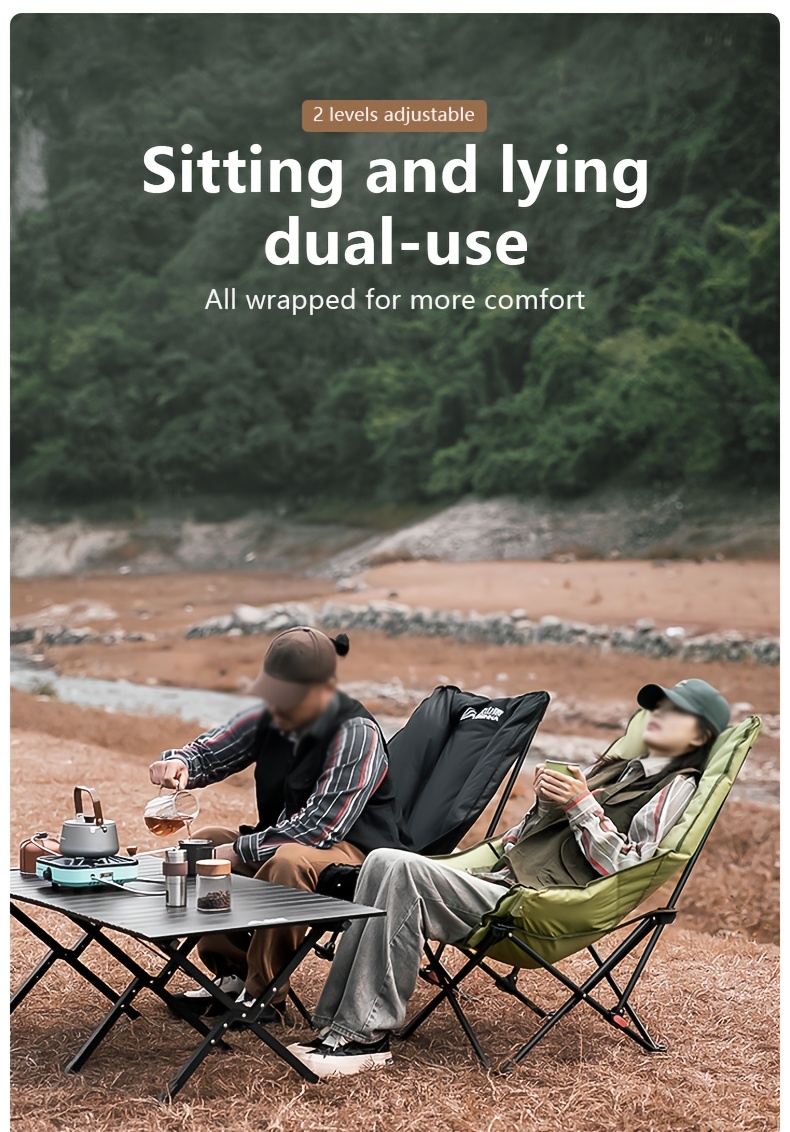 Its foldable, portable design makes it suitable for camping holidays, backyard relaxation, and balcony lounging. Durable Oxford cloth and a strong iron alloy frame ensure long-term performance, making this chair a dependable choice for outdoor comfort.