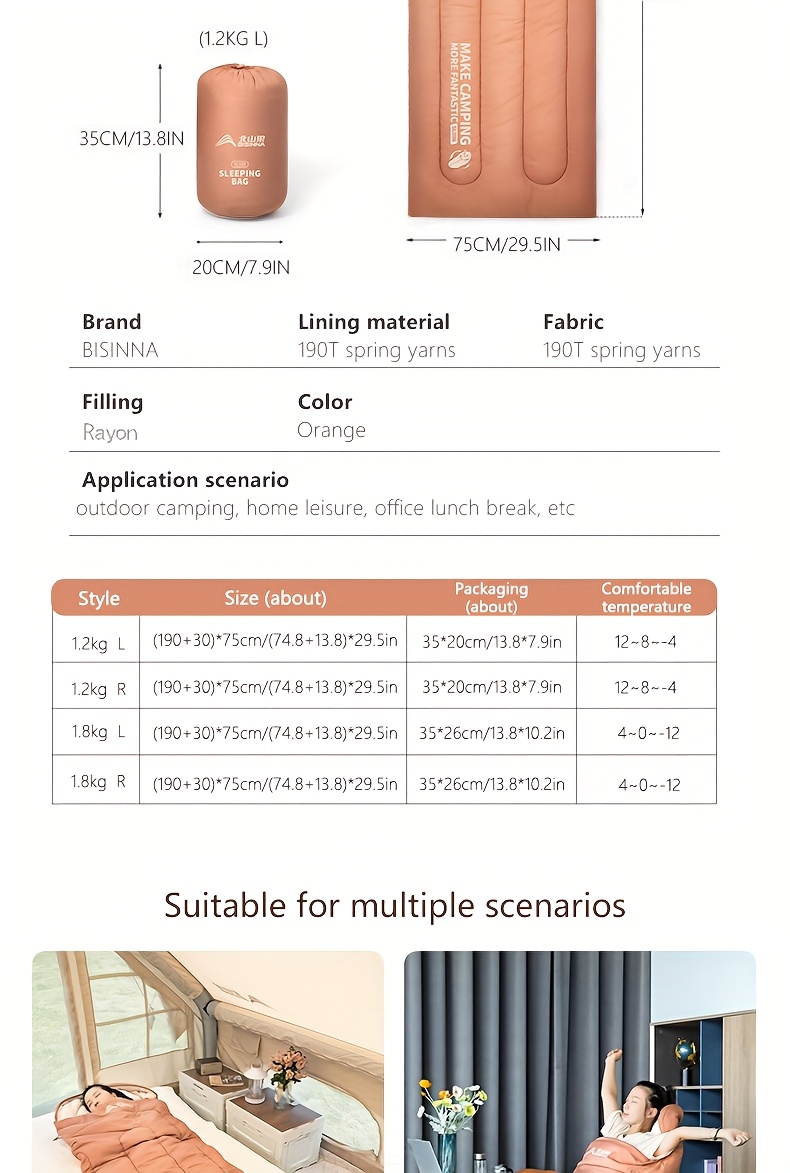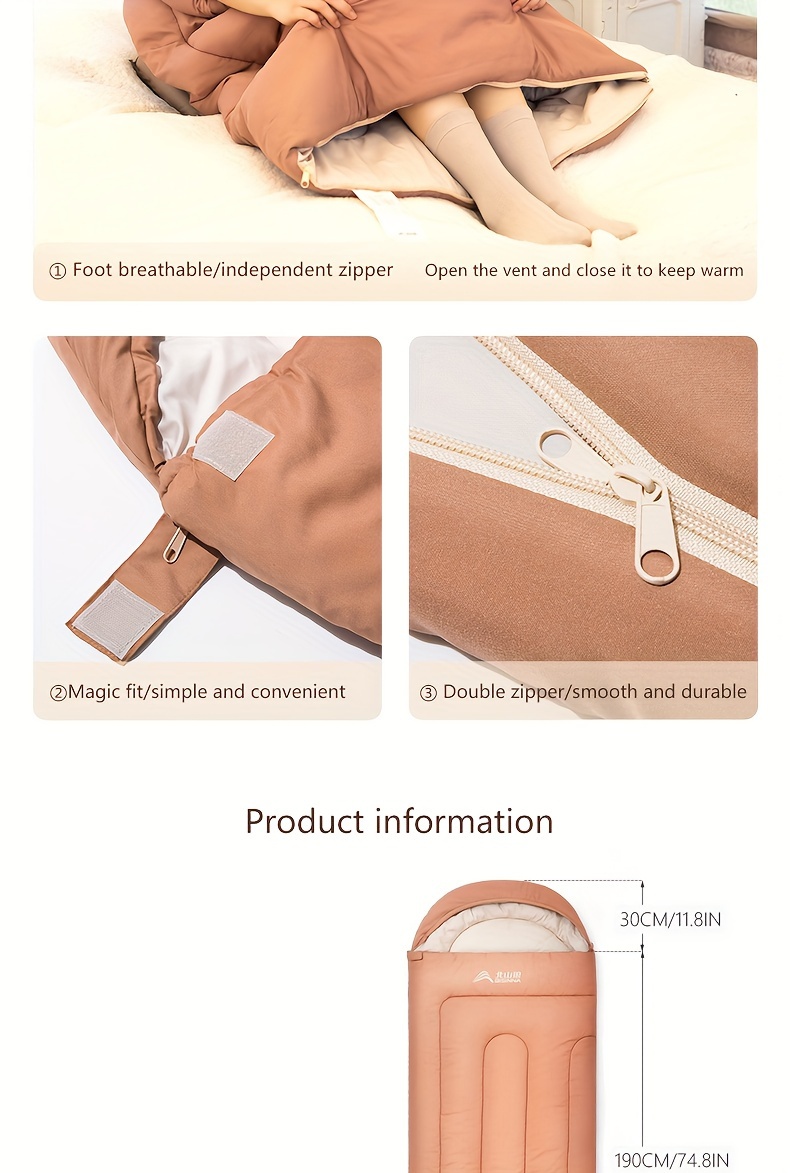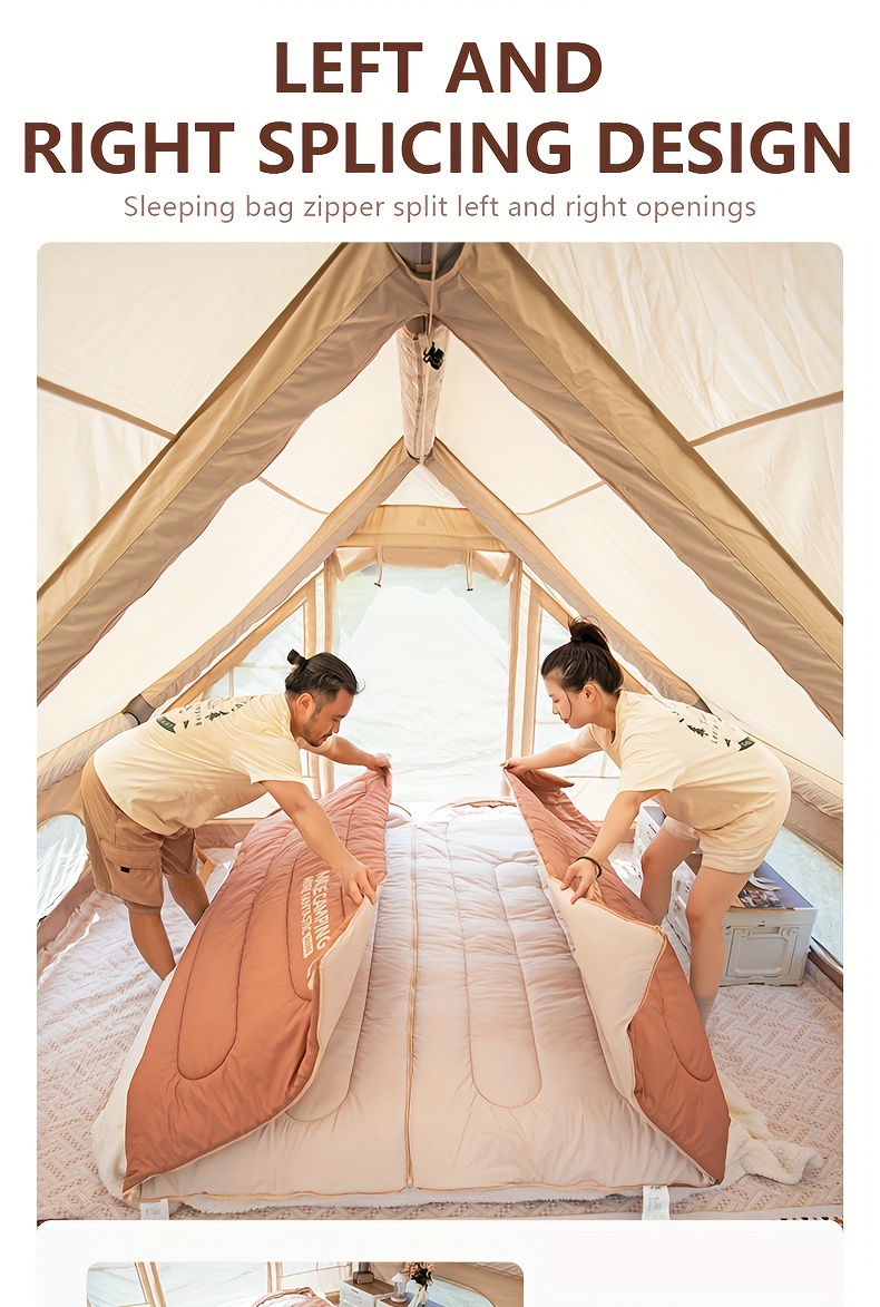 The BISINNA Thickened Warm Sleeping Bag is an insulated, hooded outdoor sleeping system designed for camping, hiking, mountaineering, and multi-season use. With an oval-shaped design, quilt-style interior, and synthetic fiber insulation, it delivers excellent warmth retention in spring, autumn, and winter environments.