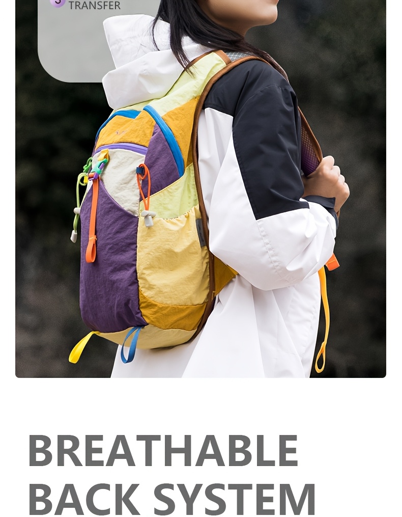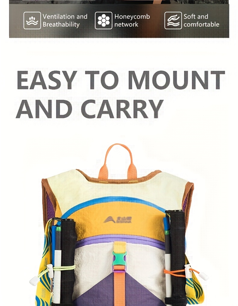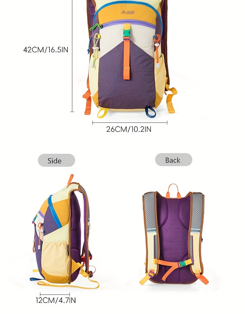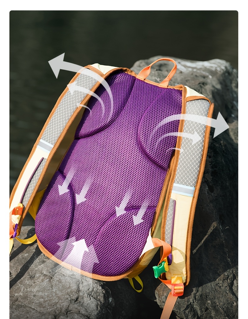 The pack features an ergonomic back panel designed to promote airflow and reduce pressure during long treks. Its lightweight structure keeps carrying effortless while offering enough room for essentials such as snacks, water bottles, clothing layers, small tools, electronics, and travel gear. With multi-color vibrant options, hikers can choose a style that fits their outdoor personality.