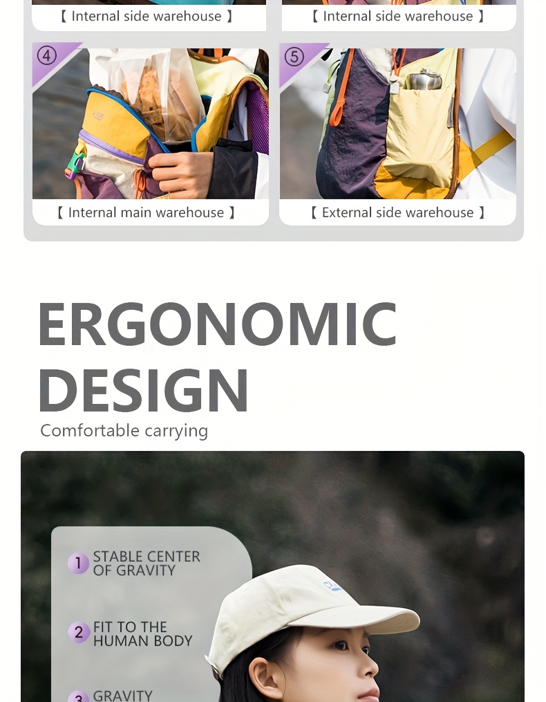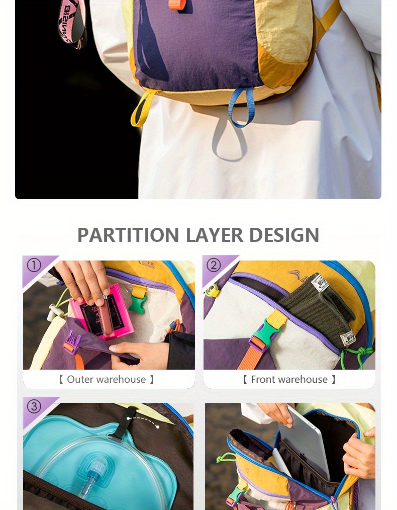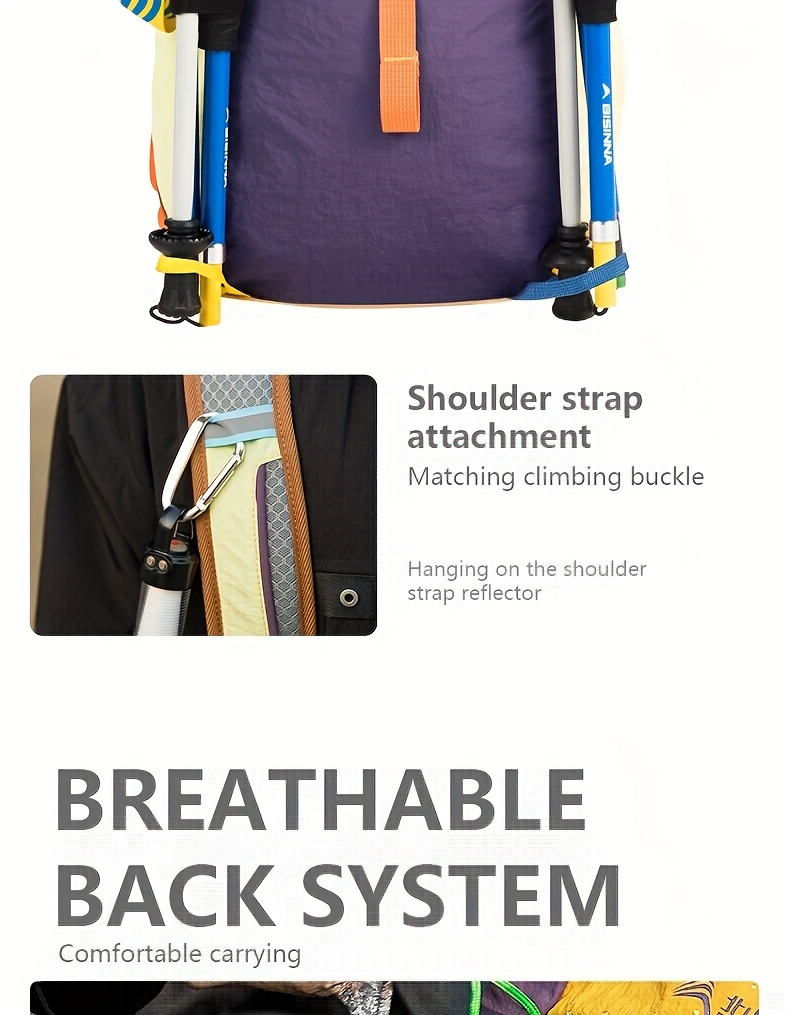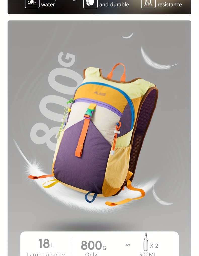 The pack features an ergonomic back panel designed to promote airflow and reduce pressure during long treks. Its lightweight structure keeps carrying effortless while offering enough room for essentials such as snacks, water bottles, clothing layers, small tools, electronics, and travel gear. With multi-color vibrant options, hikers can choose a style that fits their outdoor personality.