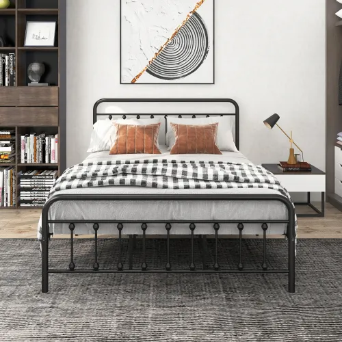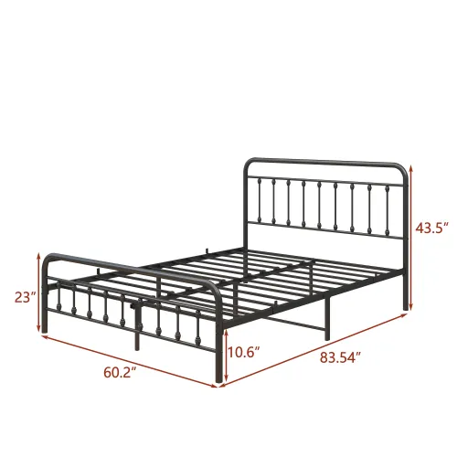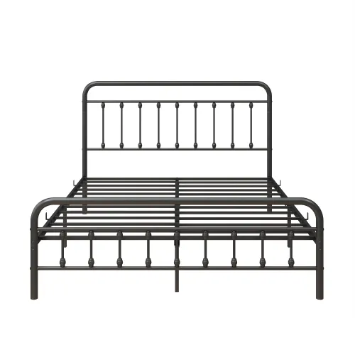 Product Name:Metal Platform Bed Frame, Victorian Style Headboard/Footboard/Under Bed Storage/No Box Spring Needed/Queen Size Black