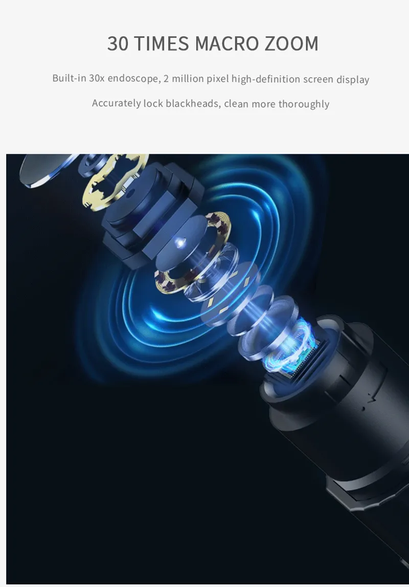 combines powerful suction with visual precision, allowing you to clearly see and treat problem areas using its built-in 30X