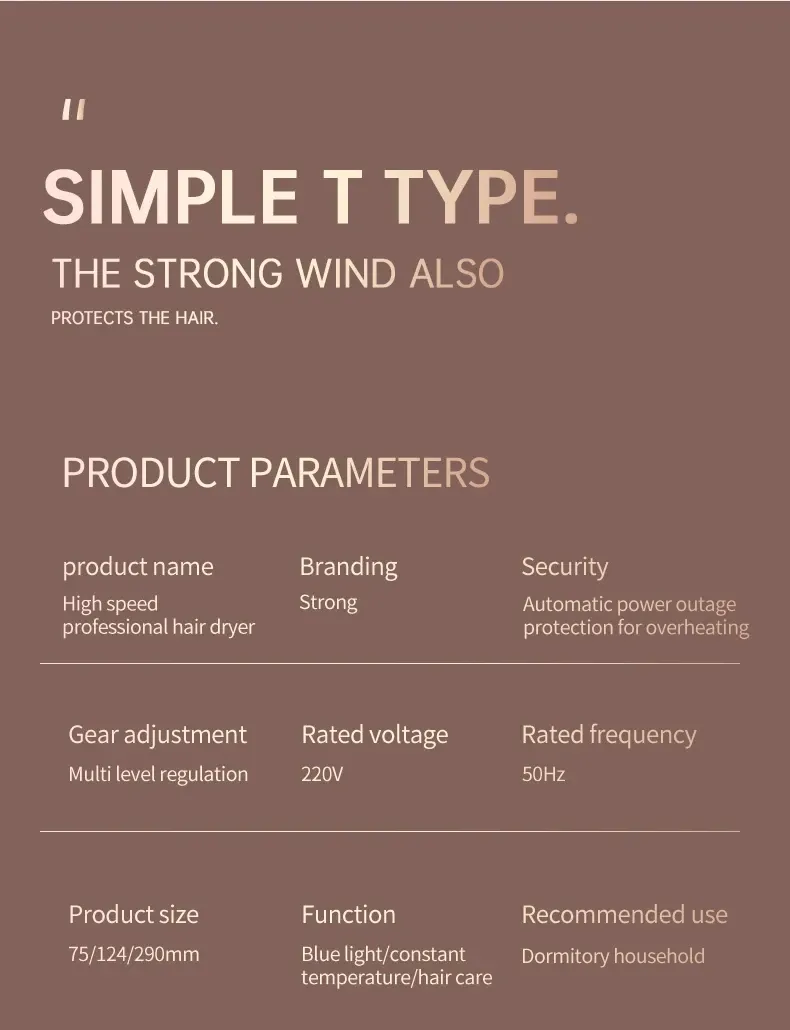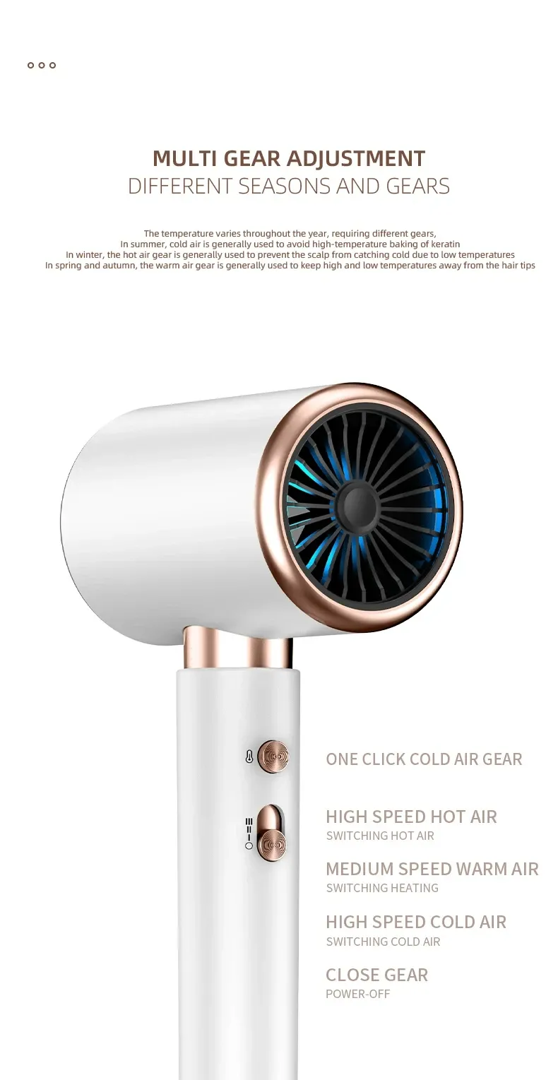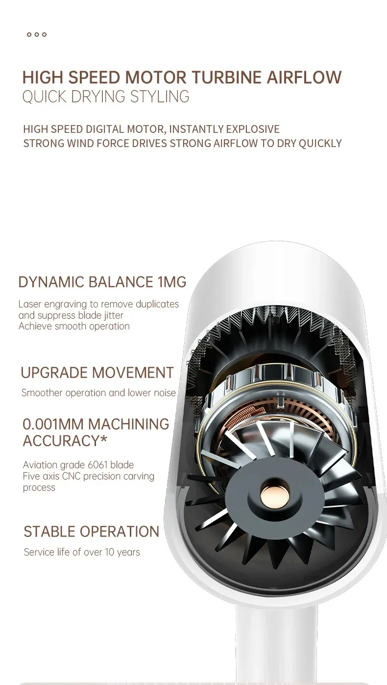 High speed electric turbine airflow: Experience the power of high-speed electric turbine airflow, aimed at quickly and efficiently drying hair.