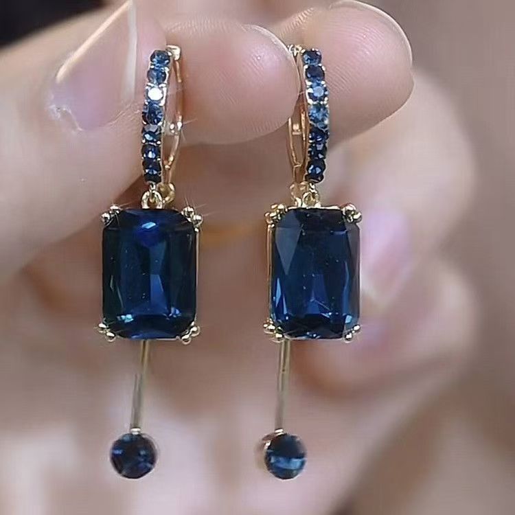 The Blue Square Crystal Earrings are a must-have for anyone looking to add a sophisticated and sparkling touch to their