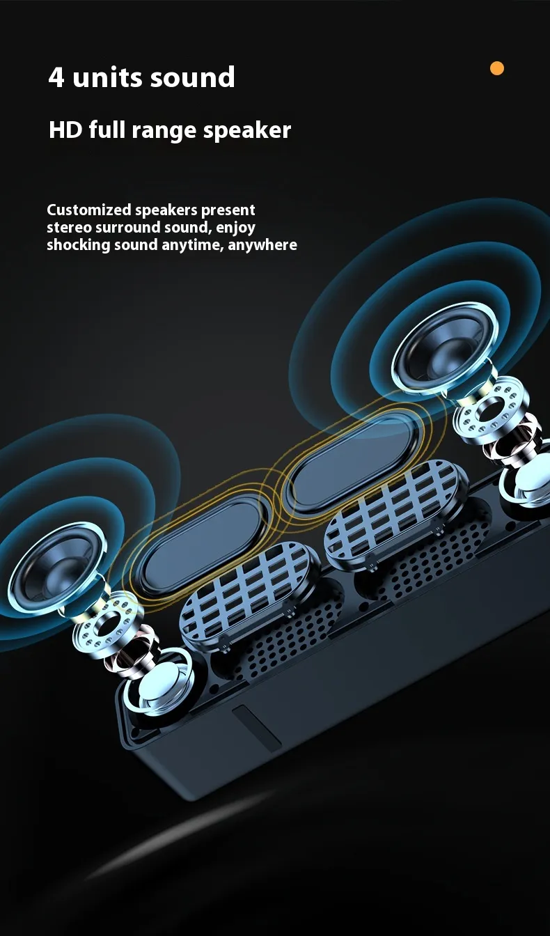 Mejora tu experiencia musical con el Altavoz Bluetooth de alto volumen y sonido prolongado, diseñado para brindar un audio nítido, graves potentes y una batería de larga duración. Perfecto para fiestas, aventuras al aire libre, entretenimiento en casa y eventos profesionales, este altavoz garantiza que tus pistas favoritas se escuchen alto y claro, sin importar el entorno.