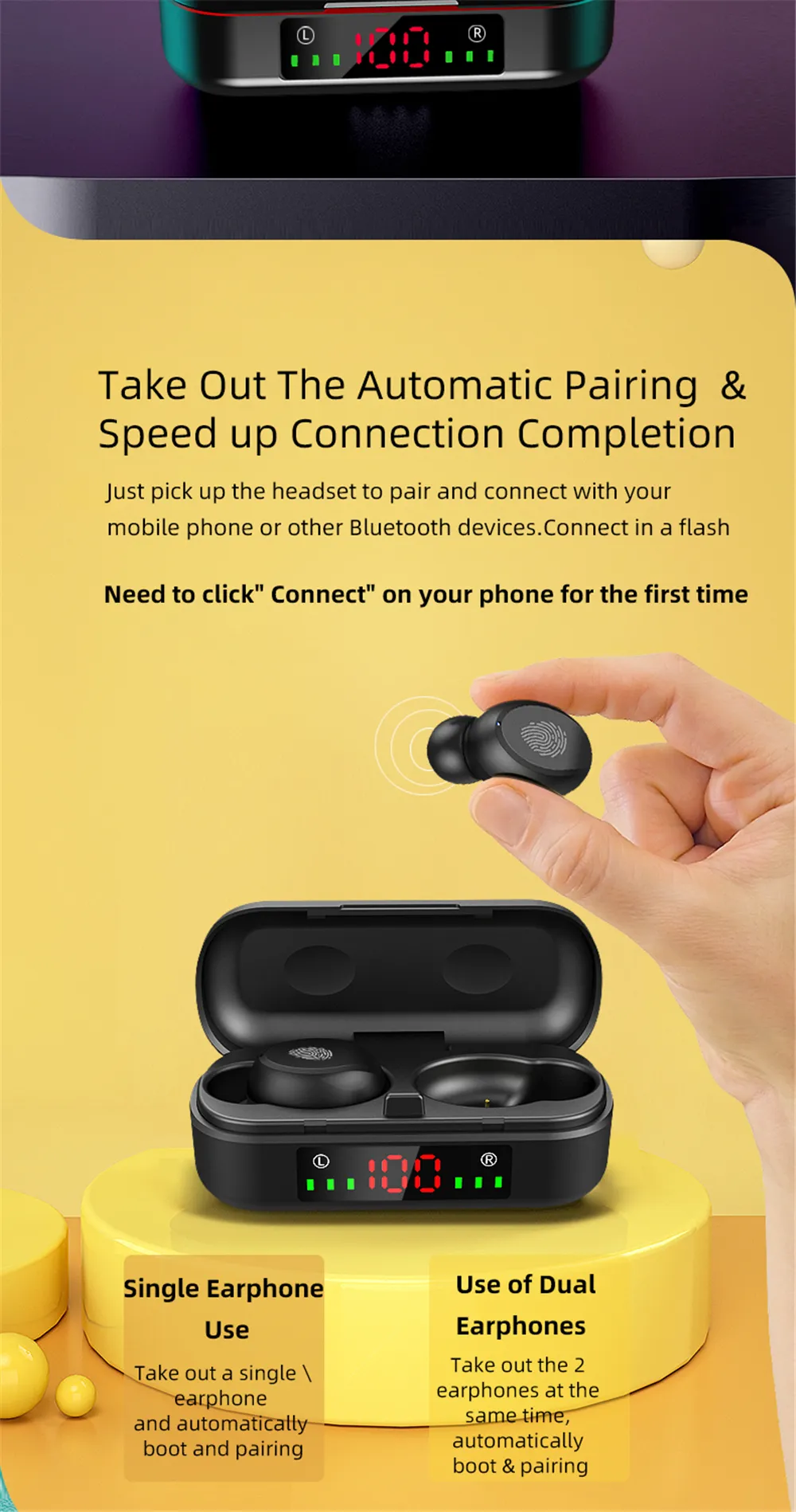 Function: battery display, voice control, call function, support music, multi-point connection