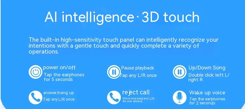 Touch Controls: Convenient touch controls let you play/pause music, adjust volume, skip tracks, and take calls with a
