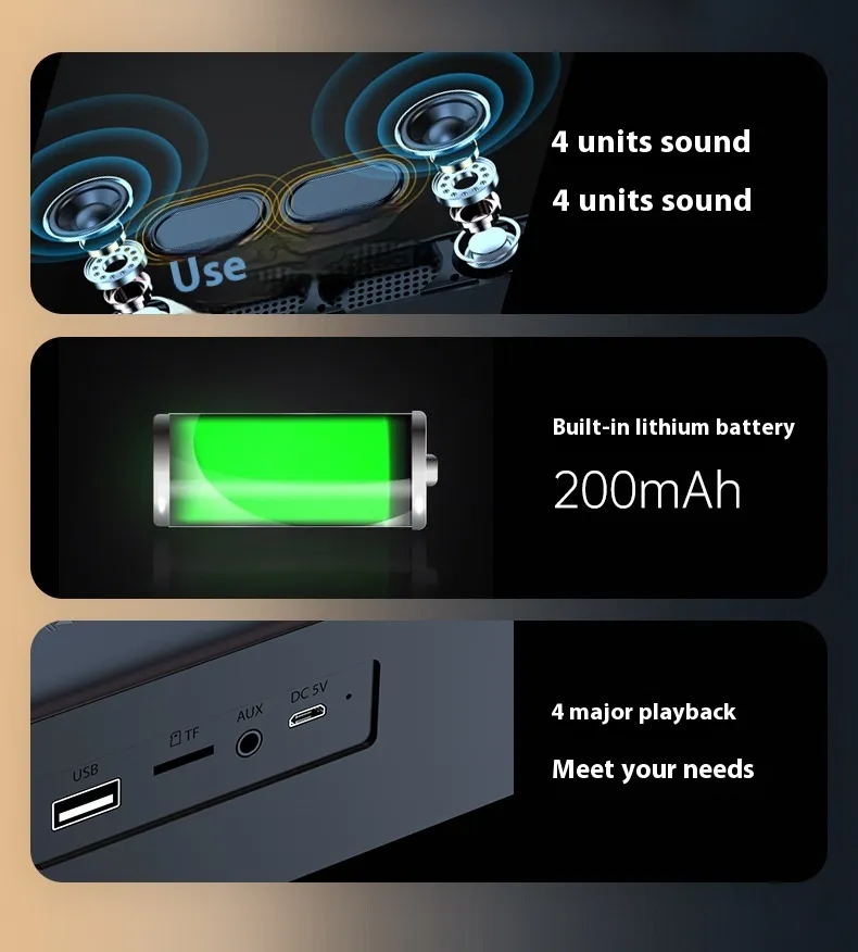 - AUX & USB Inputs: Connect non-Bluetooth devices via 3.5mm audio jack or USB port.