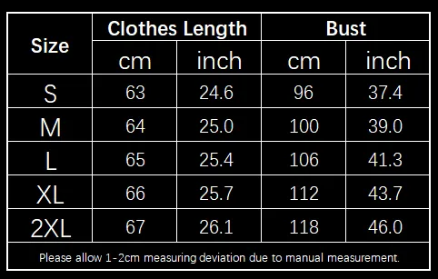 1. Las tallas asiáticas son 1 o 2 tallas más pequeñas que las europeas y americanas. Elige la talla más grande si tu talla está entre dos tallas. Puede haber una diferencia de 2-3 cm debido a la medición manual.
