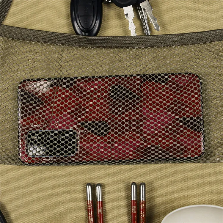 Esta bolsa de lona cuenta con un interior espacioso que te permite guardar todos tus artículos esenciales para comer al aire libre en una práctica bolsa. Con múltiples compartimentos y bolsillos, ayuda a mantener tu vajilla perfectamente organizada, evitando que se muevan o se dañen durante el transporte. Puedes guardar fácilmente platos, cubiertos, tazas, servilletas y otros accesorios sin preocuparte por el desorden. Su diseño inteligente te permite acceder rápidamente a los artículos que necesitas, facilitando la instalación y la limpieza durante las comidas al aire libre.