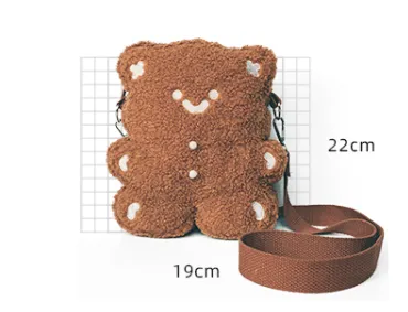 Bolsa de peluche diagonal de oso de jengibre para niñas linda