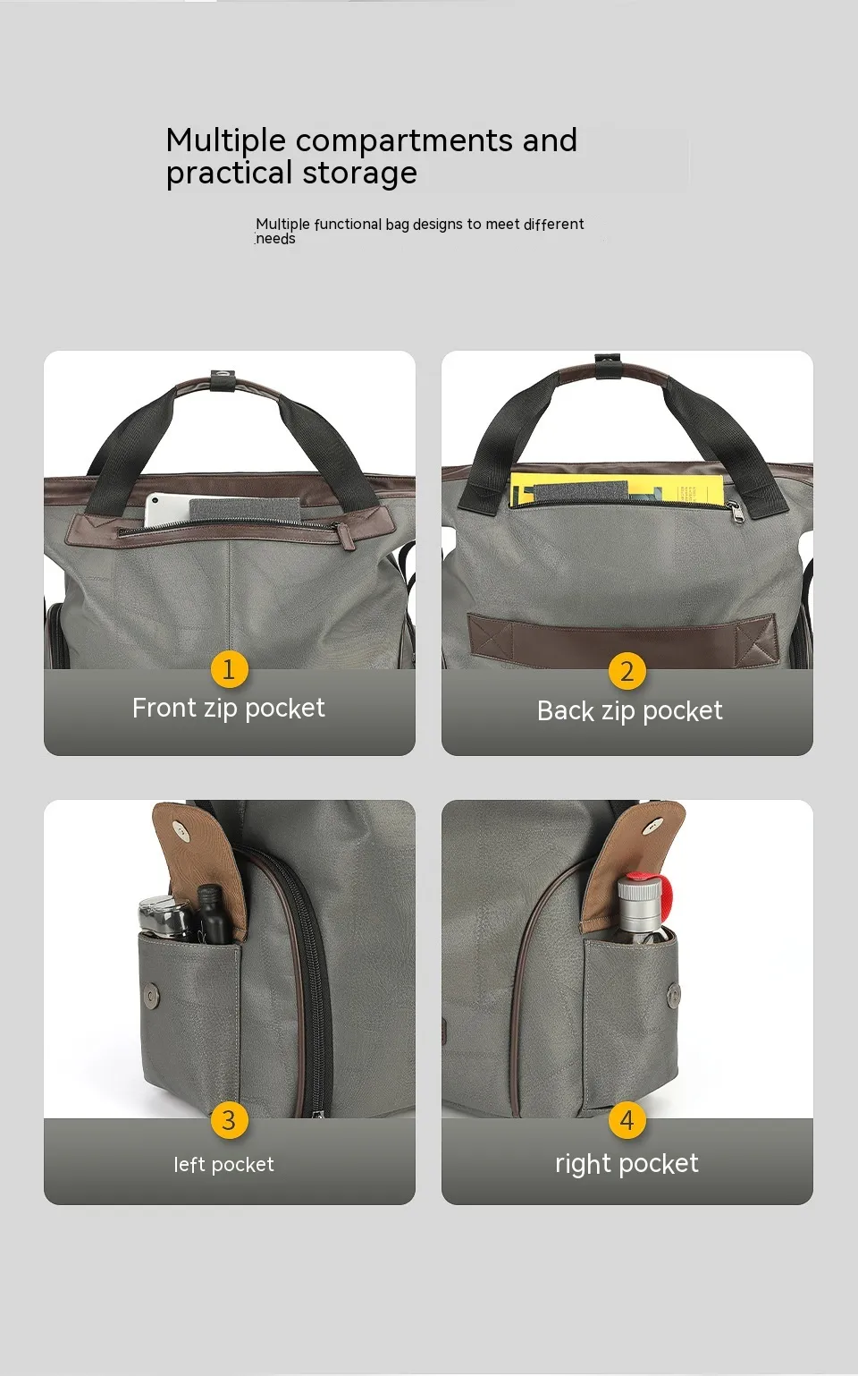 Viaja con estilo y comodidad con la Bolsa de Viaje Portátil, Ligera e Impermeable, diseñada para el aventurero moderno que valora tanto la practicidad como la estética. Esta versátil bolsa está fabricada con materiales duraderos e impermeables, lo que garantiza que tus pertenencias se mantengan seguras y secas en cualquier condición climática. Su construcción ligera la hace fácil de llevar, ya sea para ir al gimnasio, una escapada de fin de semana o una aventura internacional. La Bolsa de Viaje Portátil cuenta con un espacioso compartimento principal que ofrece amplio espacio para guardar tu ropa, artículos de aseo y artículos esenciales de viaje. Sus múltiples bolsillos, incluyendo compartimentos interiores y exteriores con cremallera, permiten empacar de forma organizada, facilitando encontrar lo que necesitas sobre la marcha. Su diseño elegante y sus colores elegantes la convierten en un complemento moderno para tu equipo de viaje, asegurándote un aspecto impecable y funcional. Diseñada para ser versátil, la Bolsa de Viaje Portátil, Ligera e Impermeable, viene con correas ajustables que se pueden usar como bolso de hombro, bandolera o simplemente para llevar en la mano. Su diseño plegable permite un fácil almacenamiento cuando no está en uso, lo que lo convierte en una opción ideal para viajeros con espacio limitado. Ya sea que esté explorando nuevos destinos o dirigiéndose a su lugar local favorito, esta bolsa de viaje es su compañera perfecta, combinando durabilidad, estilo y funcionalidad.