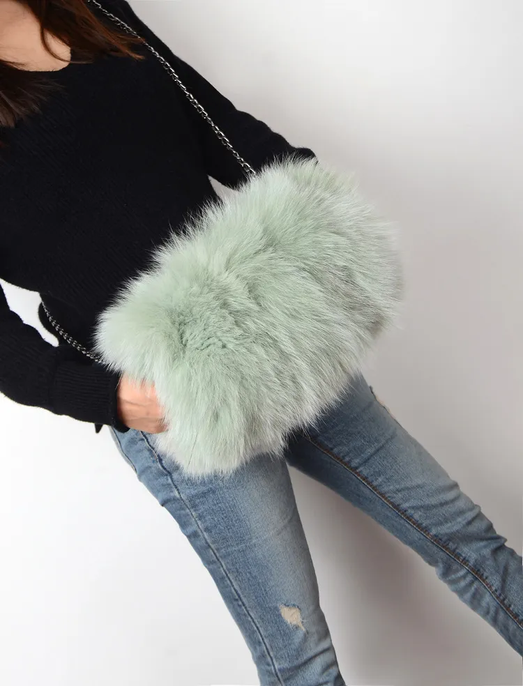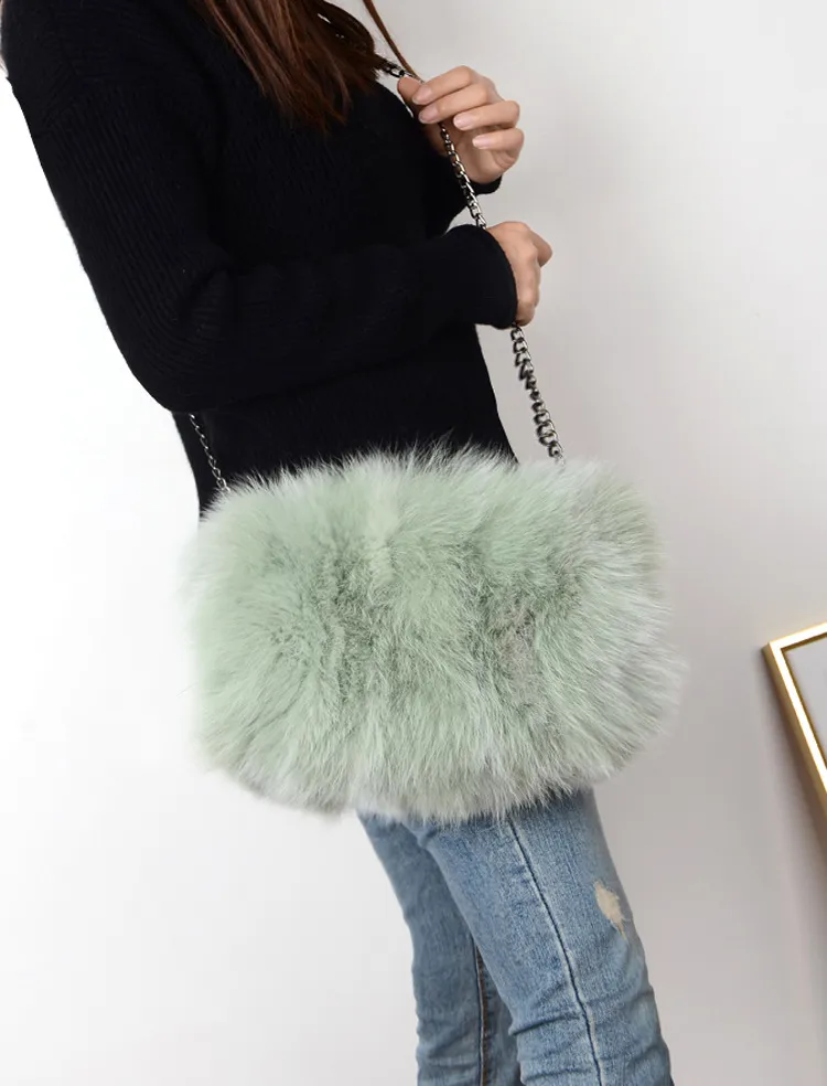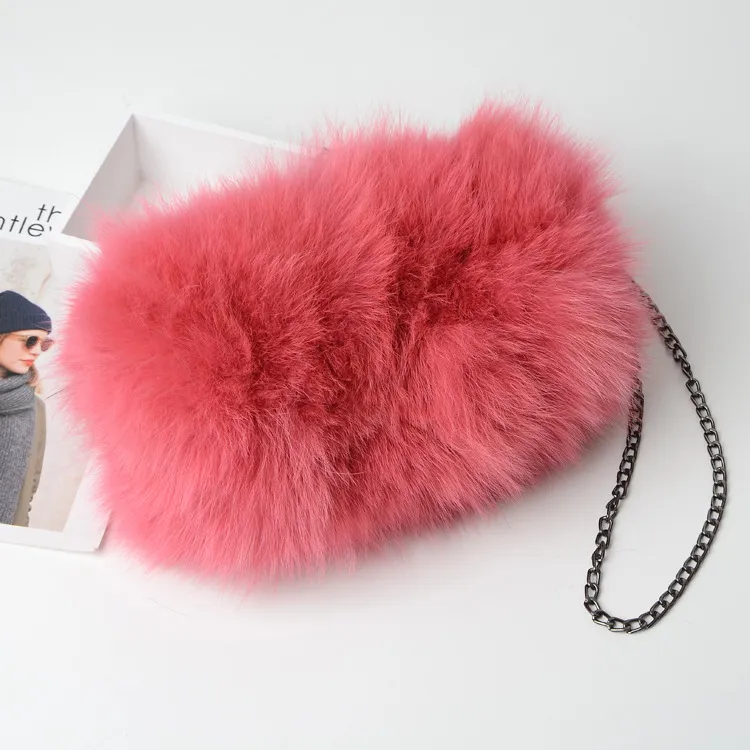 Bolso bandolera con cadena para mujer, de piel de zorro cálida y a la moda.