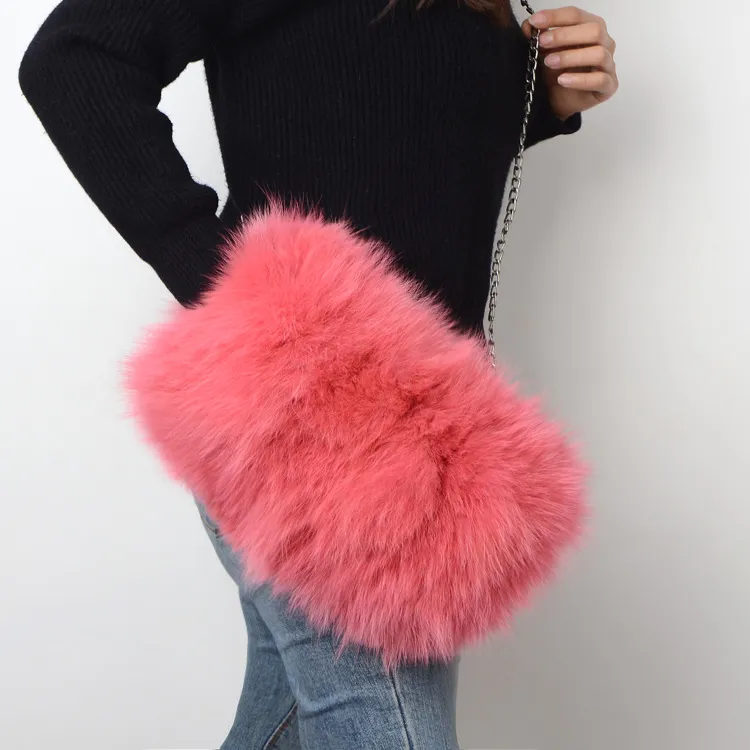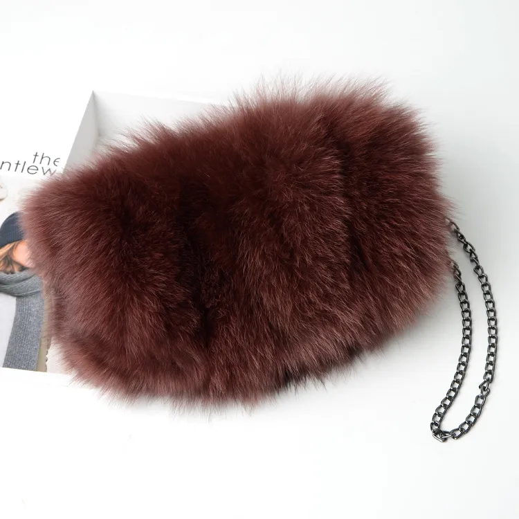 Bolso bandolera con cadena para mujer, de piel de zorro cálida y a la moda.
