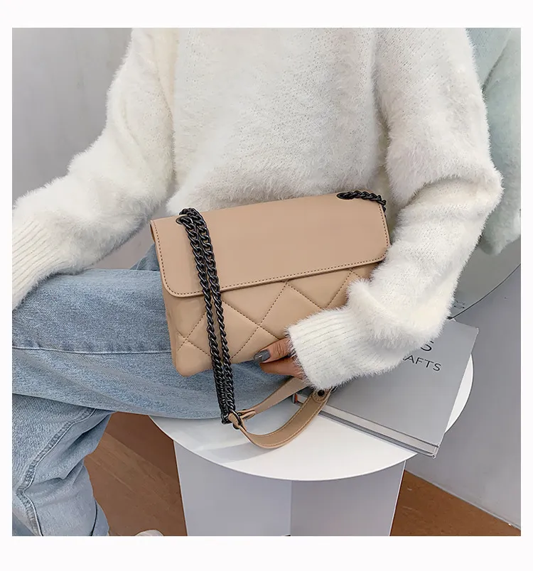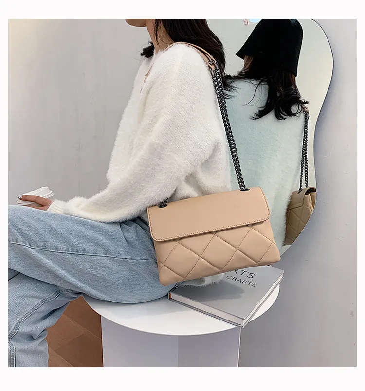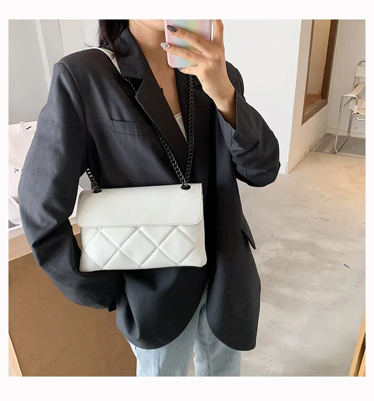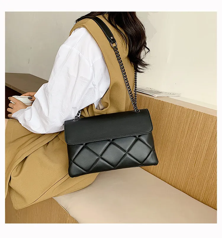 Bolso bandolera con cadena para mujer, sencillo, combinable con todo, nuevo y popular, con rombos.