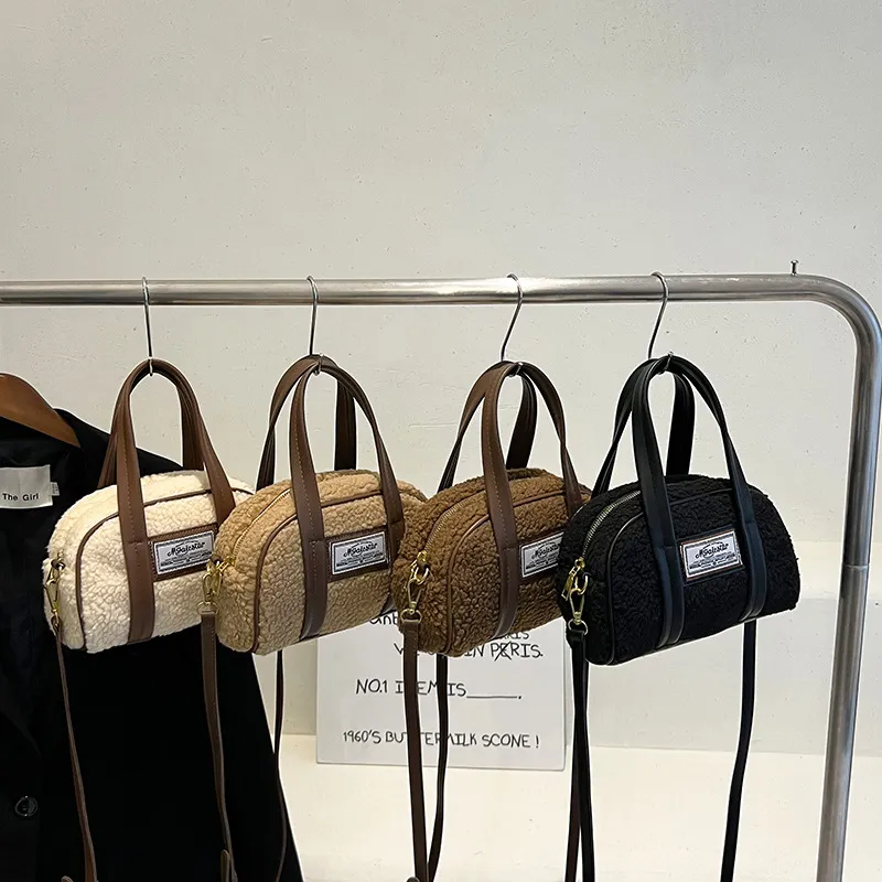 Bolso bandolera de lana de cordero para mujer, nuevo y versátil