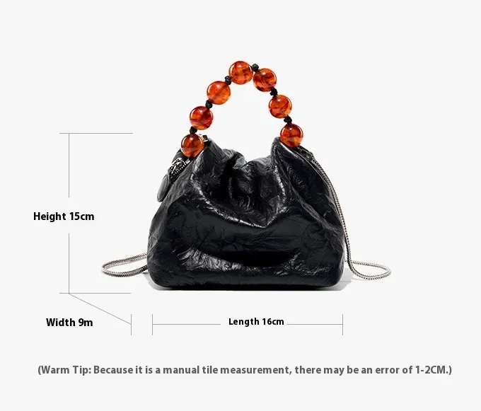 Este bolso es una combinación perfecta de diseño vanguardista y almacenamiento funcional. Los detalles de cuentas añaden un toque artístico, mientras que la versátil correa cruzada facilita su transporte. Ya sea para una reunión formal, una salida nocturna con amigos o incluso un evento informal de lujo, este bolso será tu accesorio imprescindible. El diseño de asa le da un toque artesanal único, convirtiéndolo en una excelente adición a cualquier armario. Es un iniciador de conversación y un reflejo de tu estilo personal: realza cualquier atuendo con un toque de textura, elegancia y encanto.