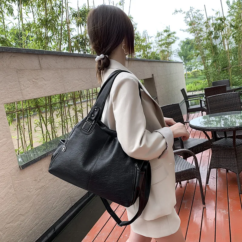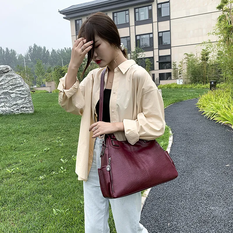 Bolso bandolera de piel suave de gran capacidad para mujer, moderno y combinable.