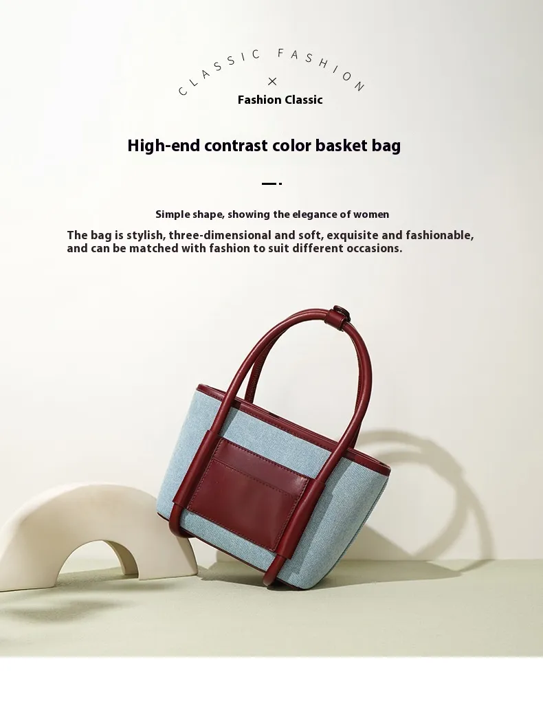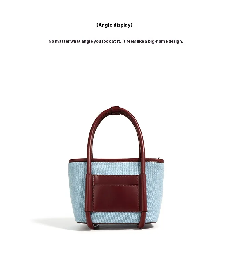 Bolso bandolera de un solo hombro con cesta de verduras de tela vaquera y piel de vaca de capa superior