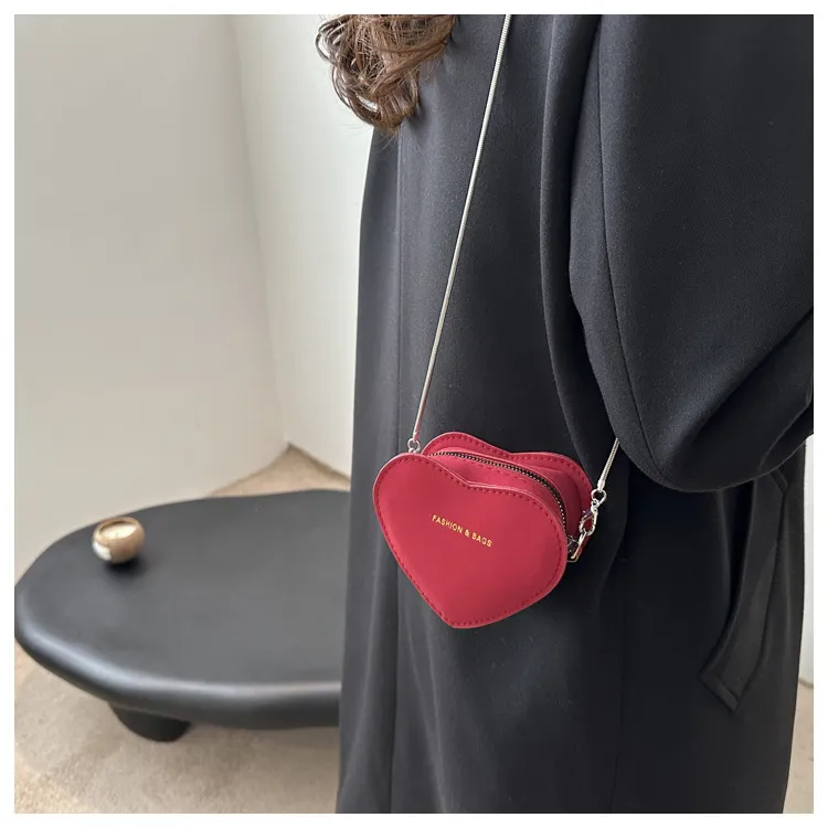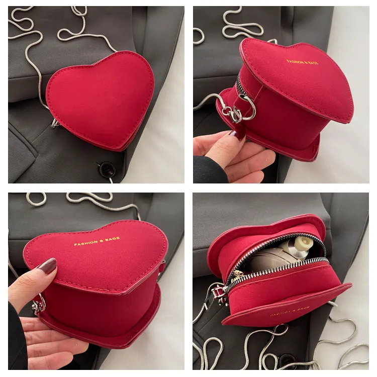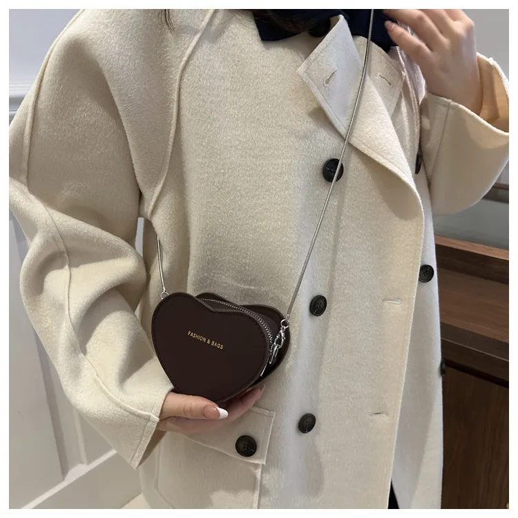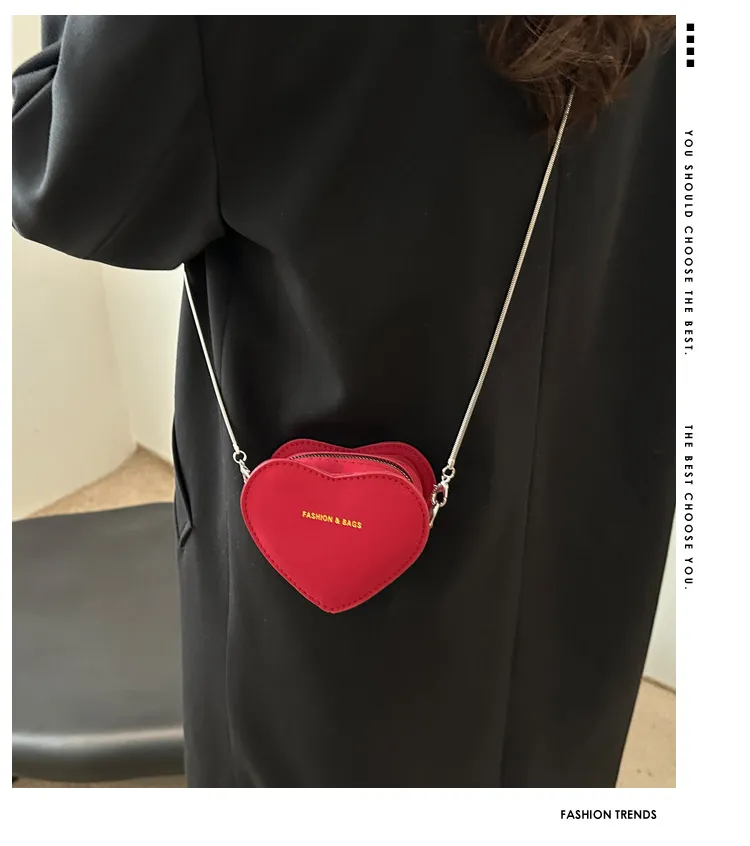 Minibolso bandolera retro con cadena y forma de corazón: una declaración de elegancia