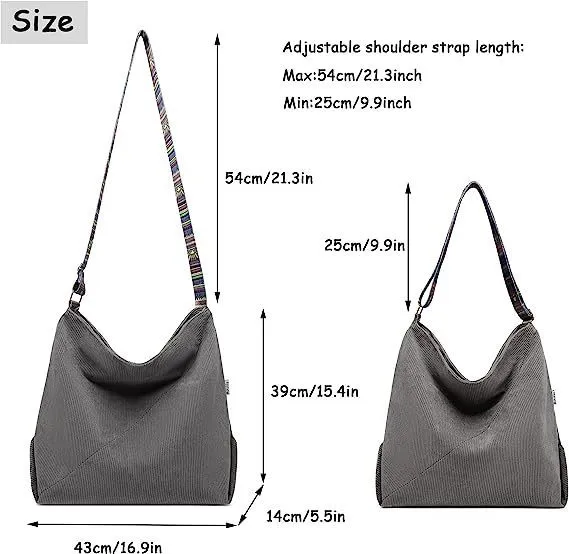 Bolso bandolera grande de pana estilo retro estilo hobo para mujer