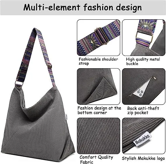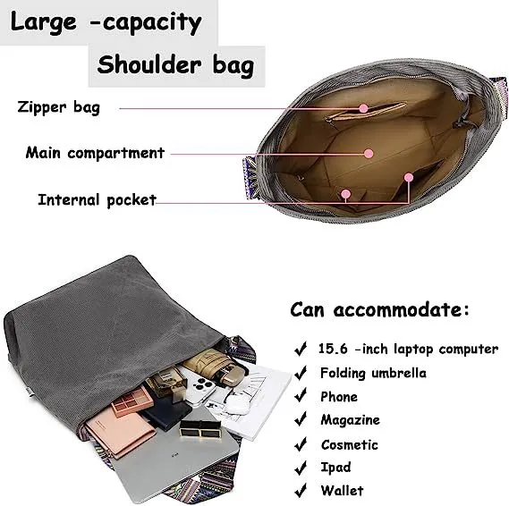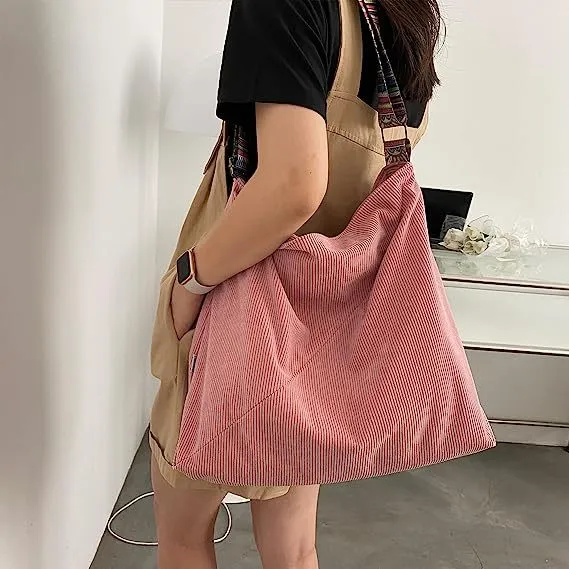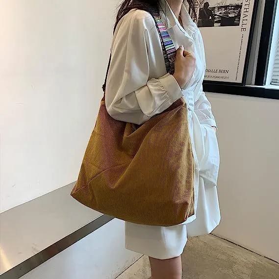 Bolso bandolera grande de pana estilo retro estilo hobo para mujer