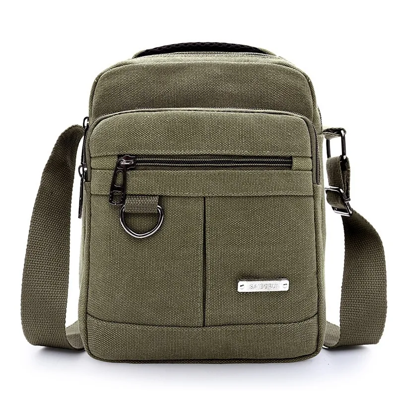 Bolso bandolera informal de lona multicapa para hombre, de un solo hombro