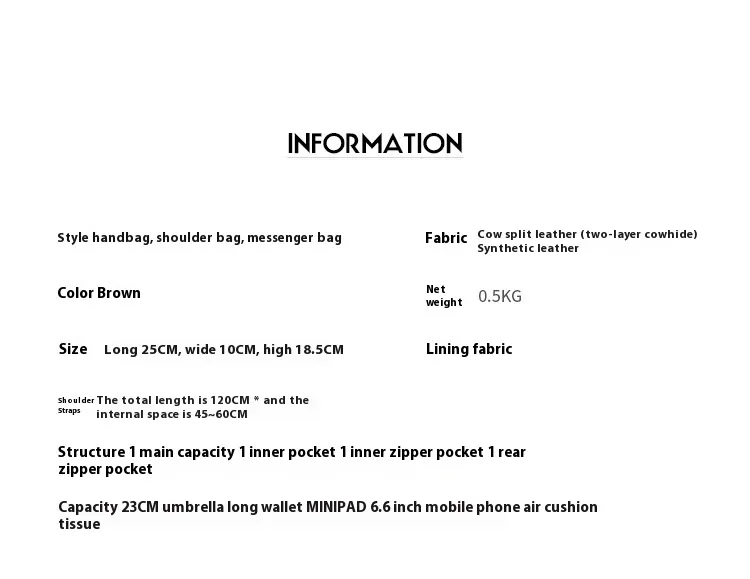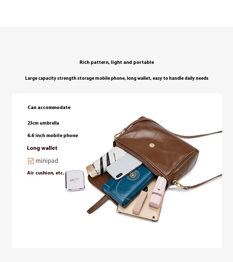 El Bolso bandolera portátil de cuero genuino de moda no es solo un accesorio elegante, sino un práctico compañero para el día a día. Está diseñado para soportar las exigencias de la vida diaria y ofrece amplio espacio de almacenamiento para tus artículos personales. Ya sea que vayas a trabajar, disfrutes de una escapada de fin de semana o hagas recados, la durabilidad, el estilo y la comodidad de este bolso lo convierten en una excelente opción para la persona moderna y ocupada.