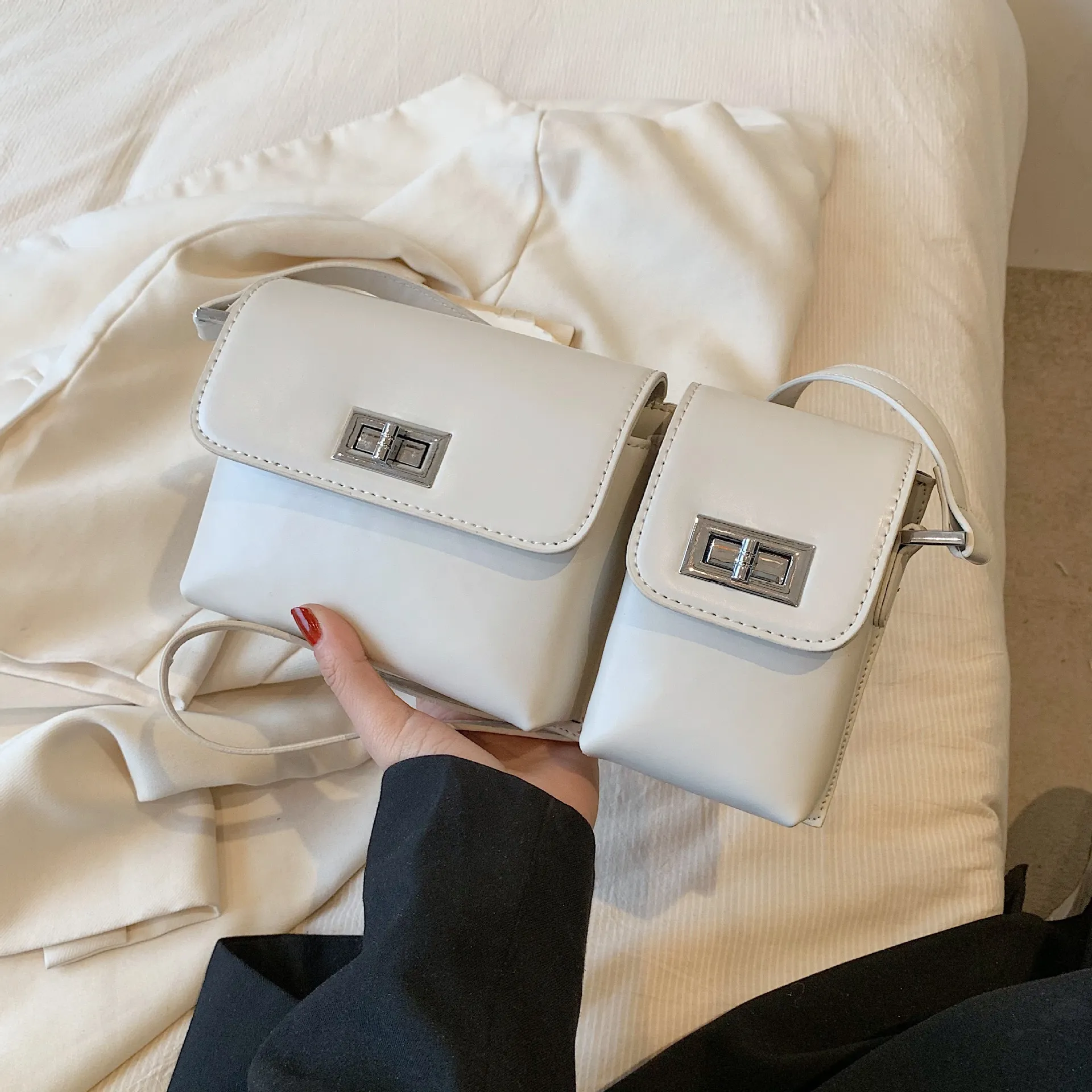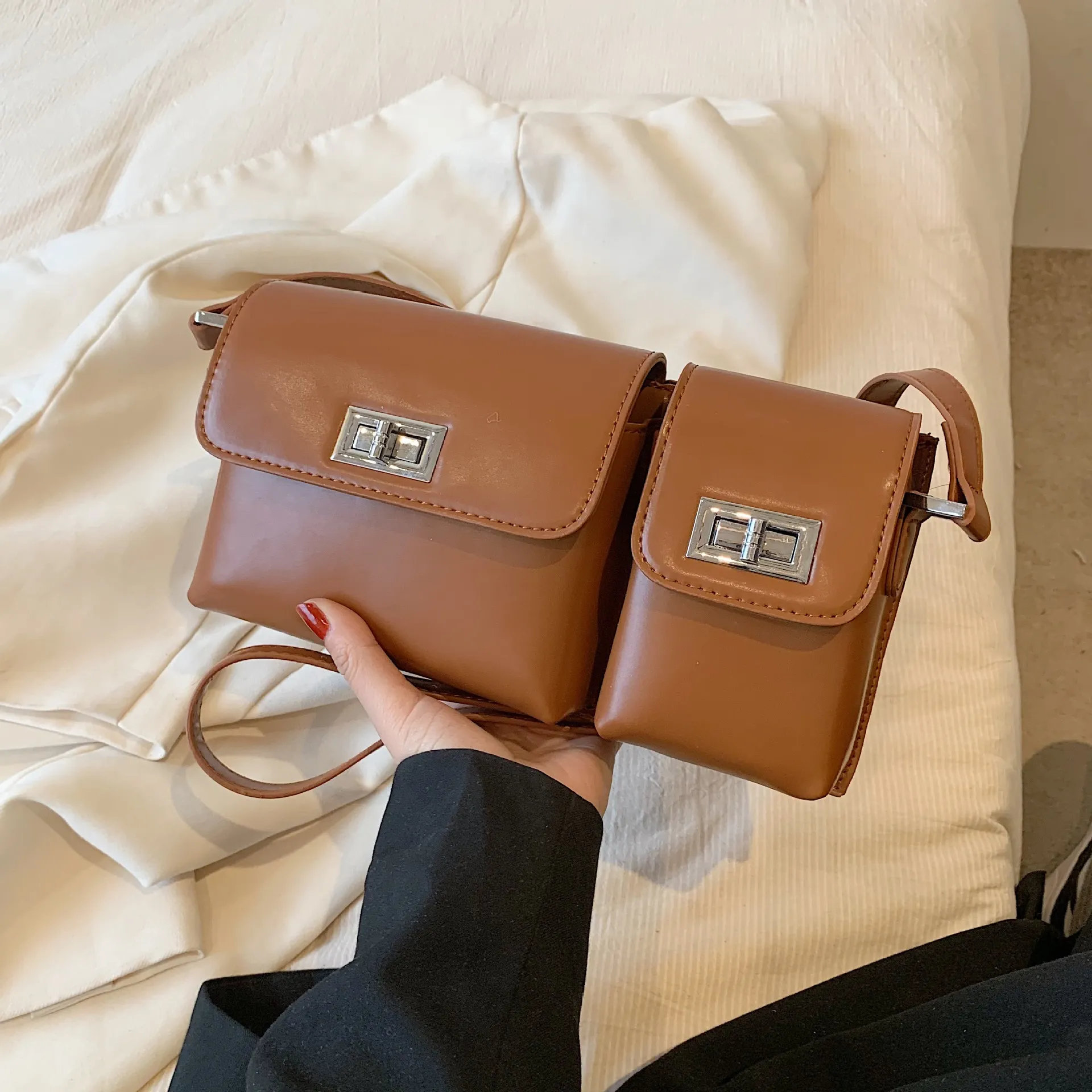 Bolso bandolera retro con doble bolsillo y diseño axilar para mujer