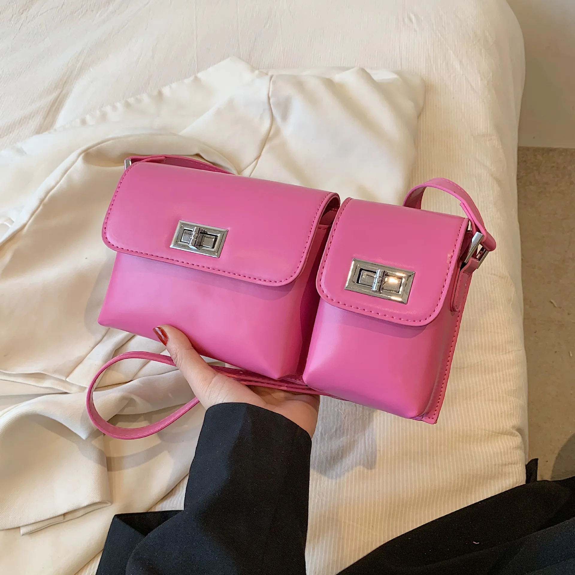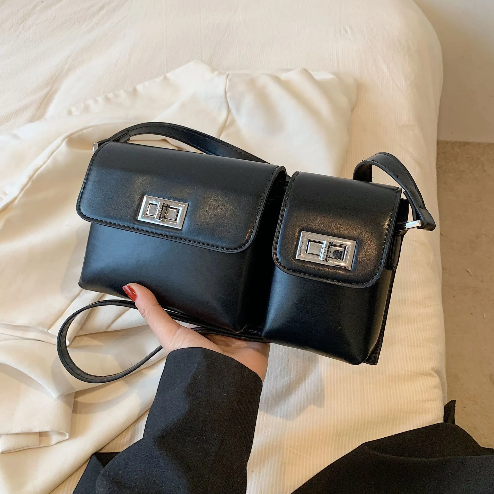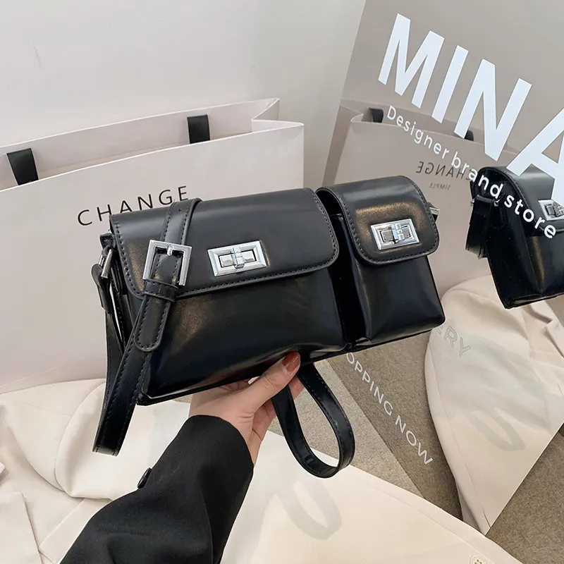 Bolso bandolera retro con doble bolsillo y diseño axilar para mujer