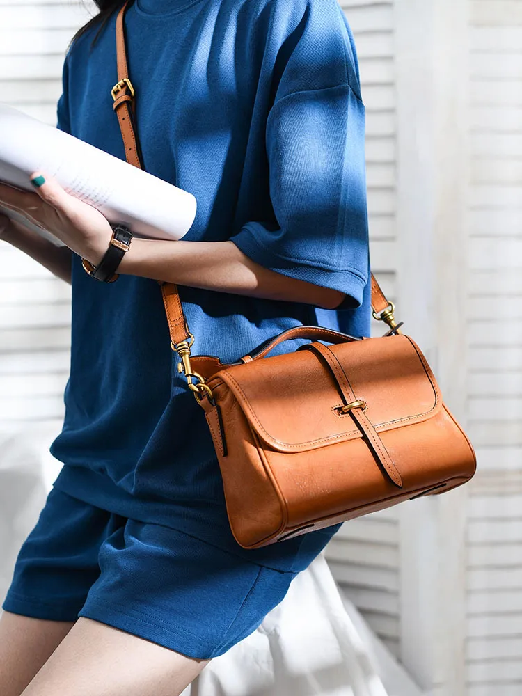 Bolso bandolera vintage de piel de vaca de primera capa, hecho a mano