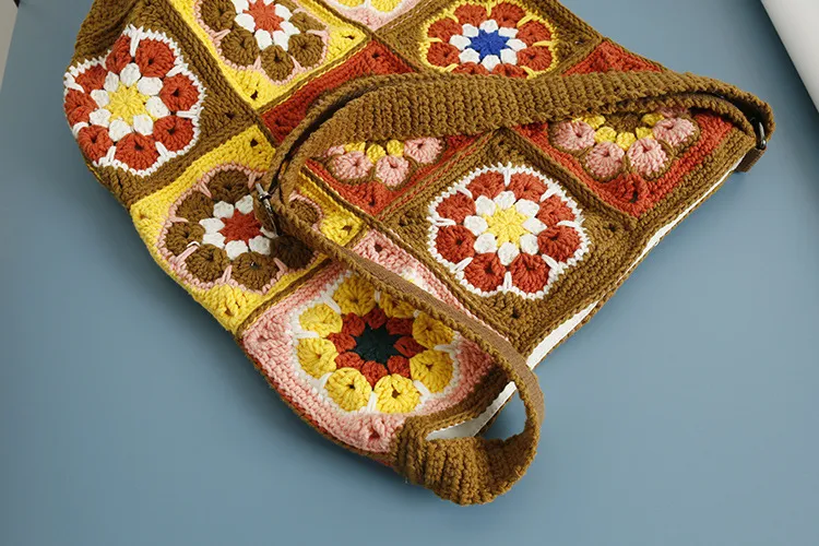 Bolso de cubo tejido a mano estilo étnico a cuadros para abuela de niña